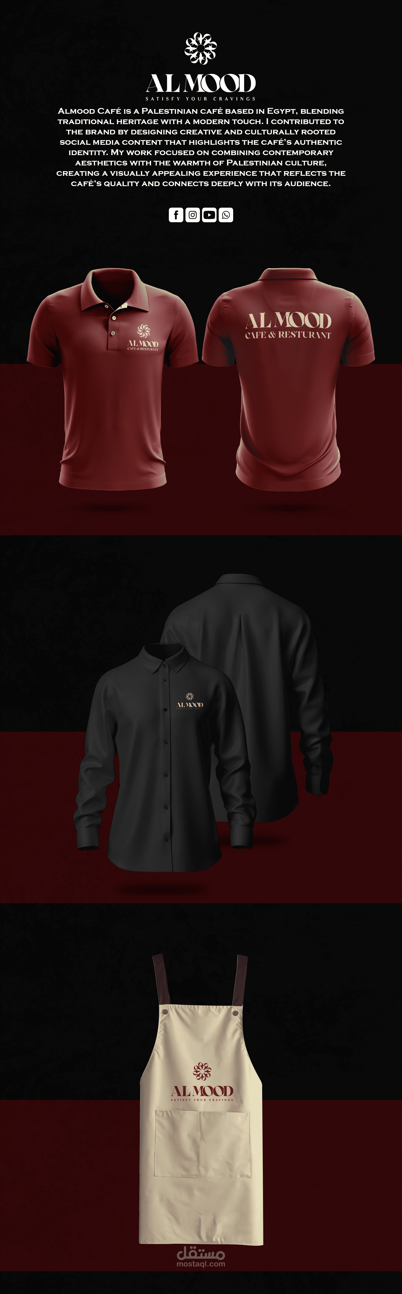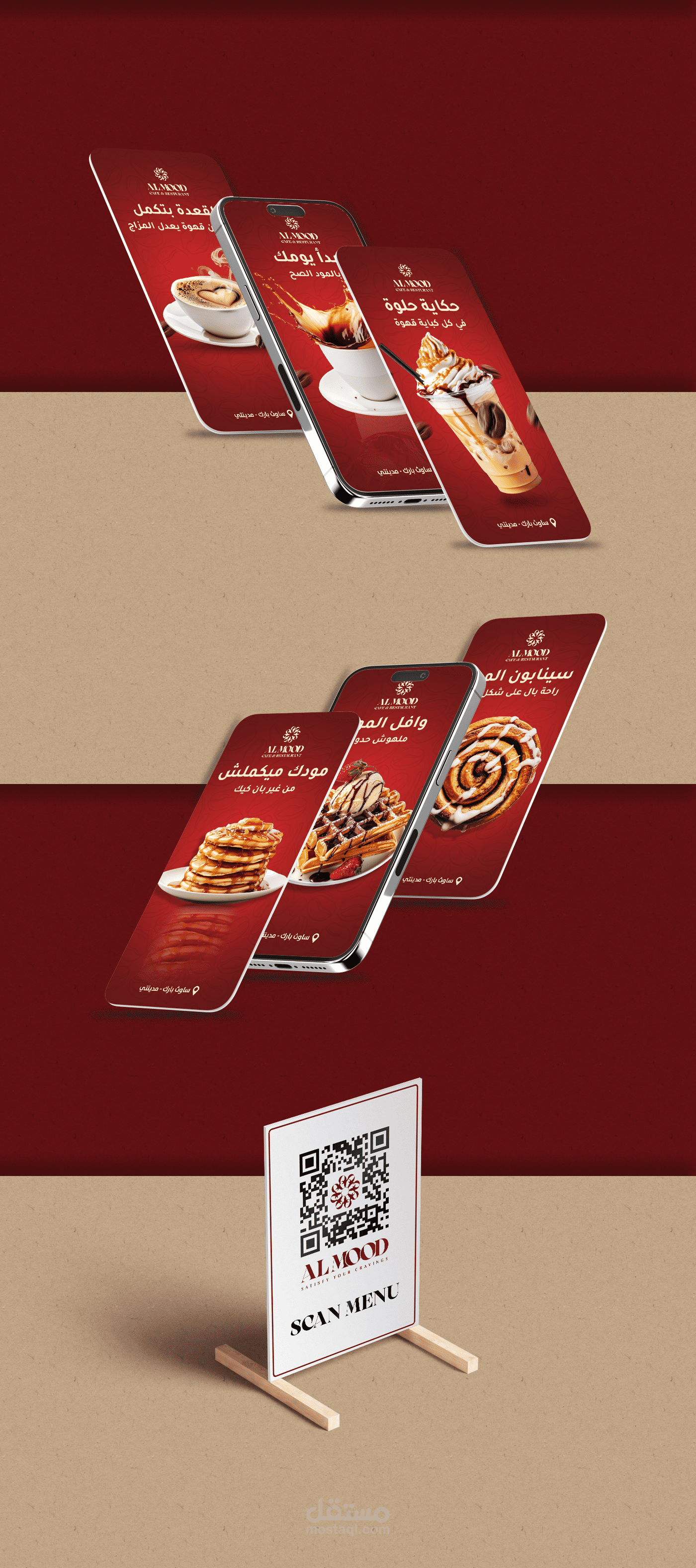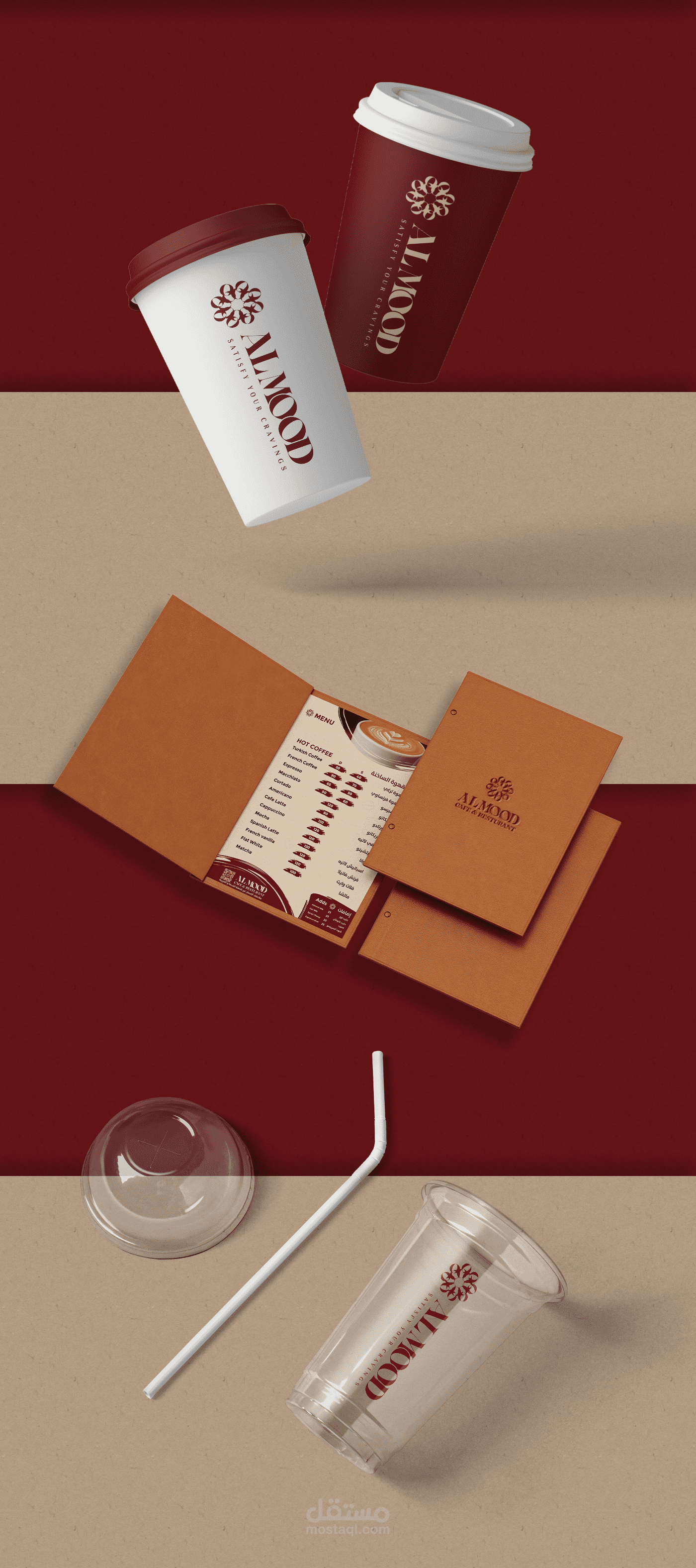 تم تصميم هوية بصرية متكاملة لمقهى Almood Cafe، لتعكس أجواء المكان وفرادته، بدءًا من تصميم الشعار الرئيسي والأنماط البصرية المرافقة، وصولًا إلى اختيار الألوان والخطوط المناسبة التي تعكس الدفء والأناقة المرتبطة بعالم القهوة.