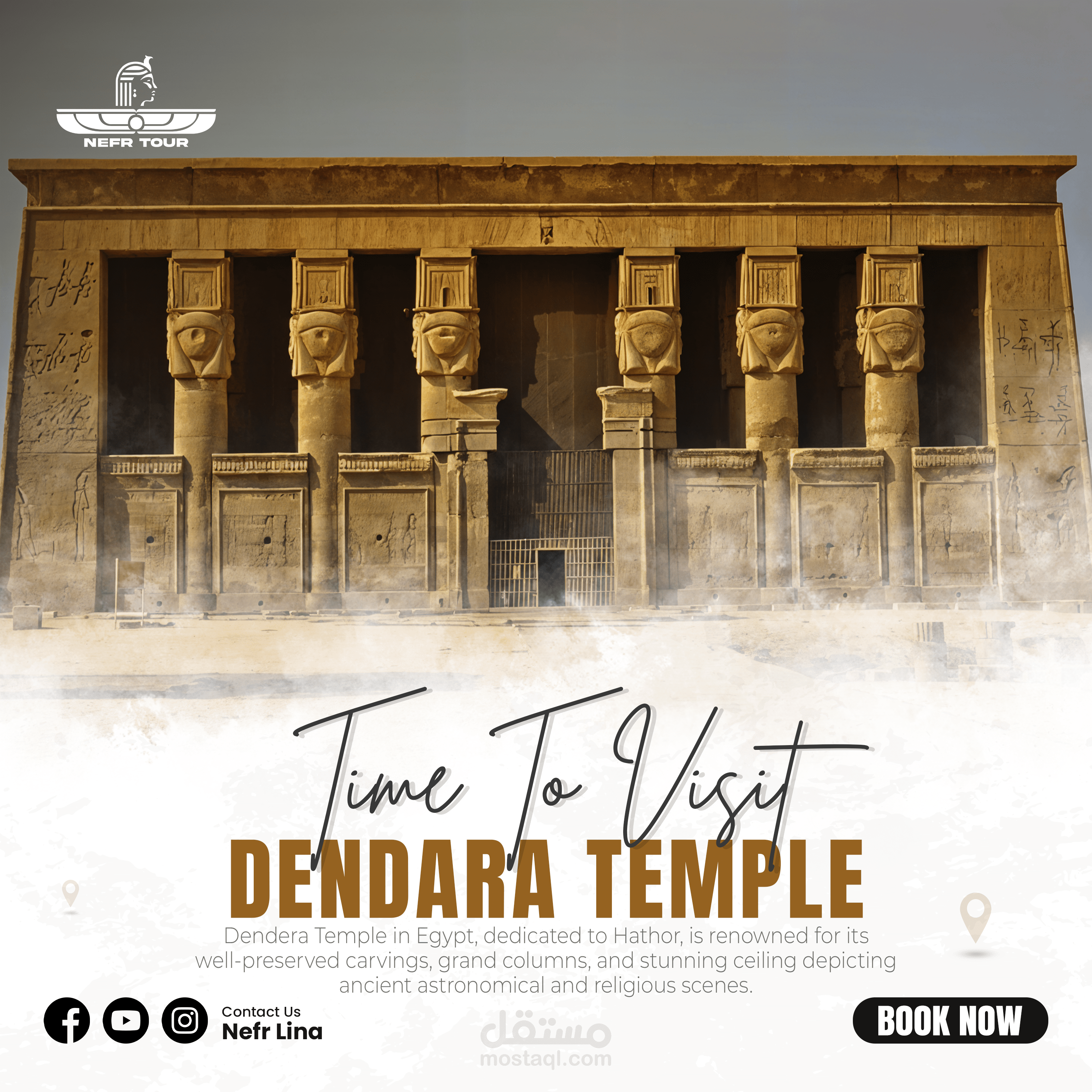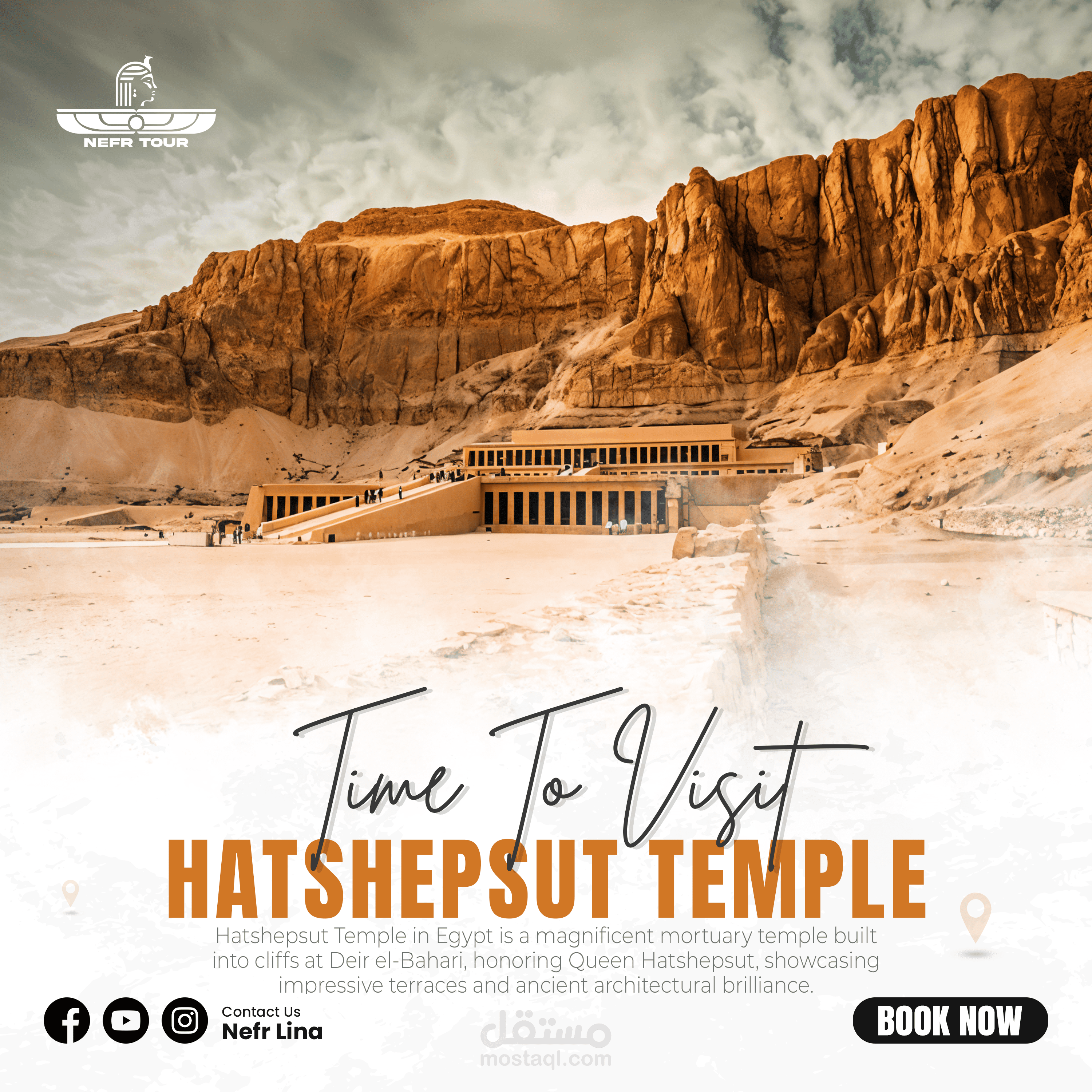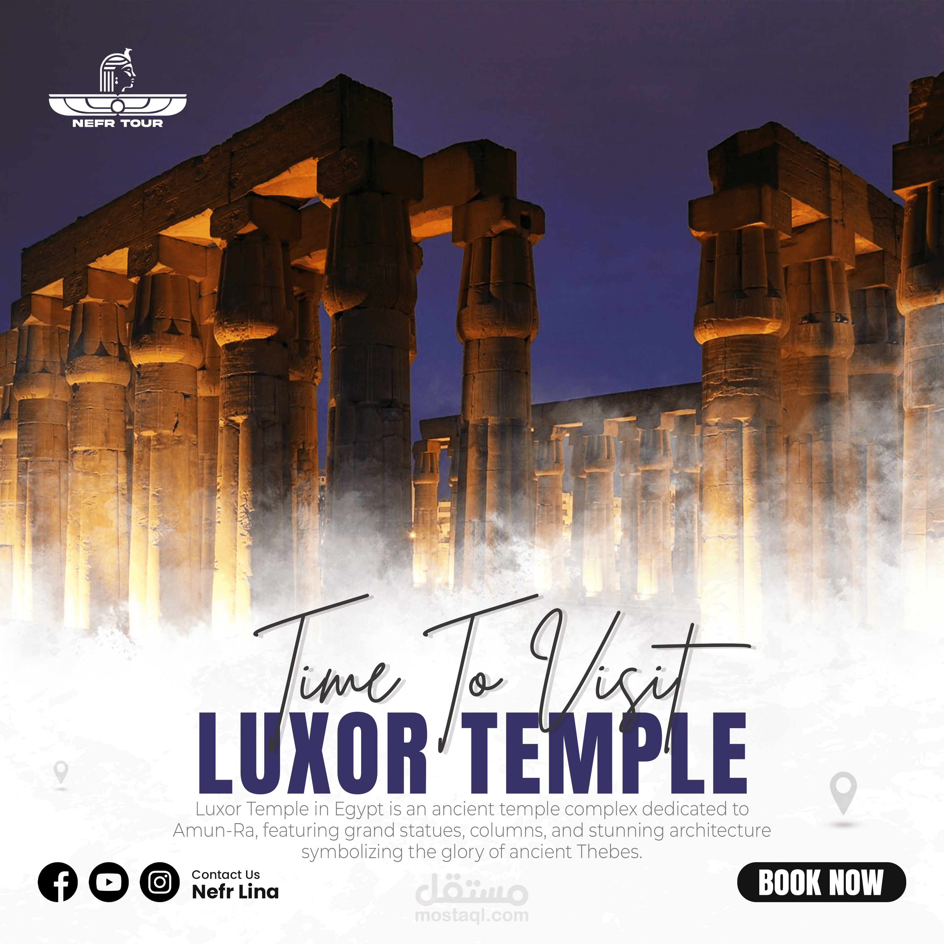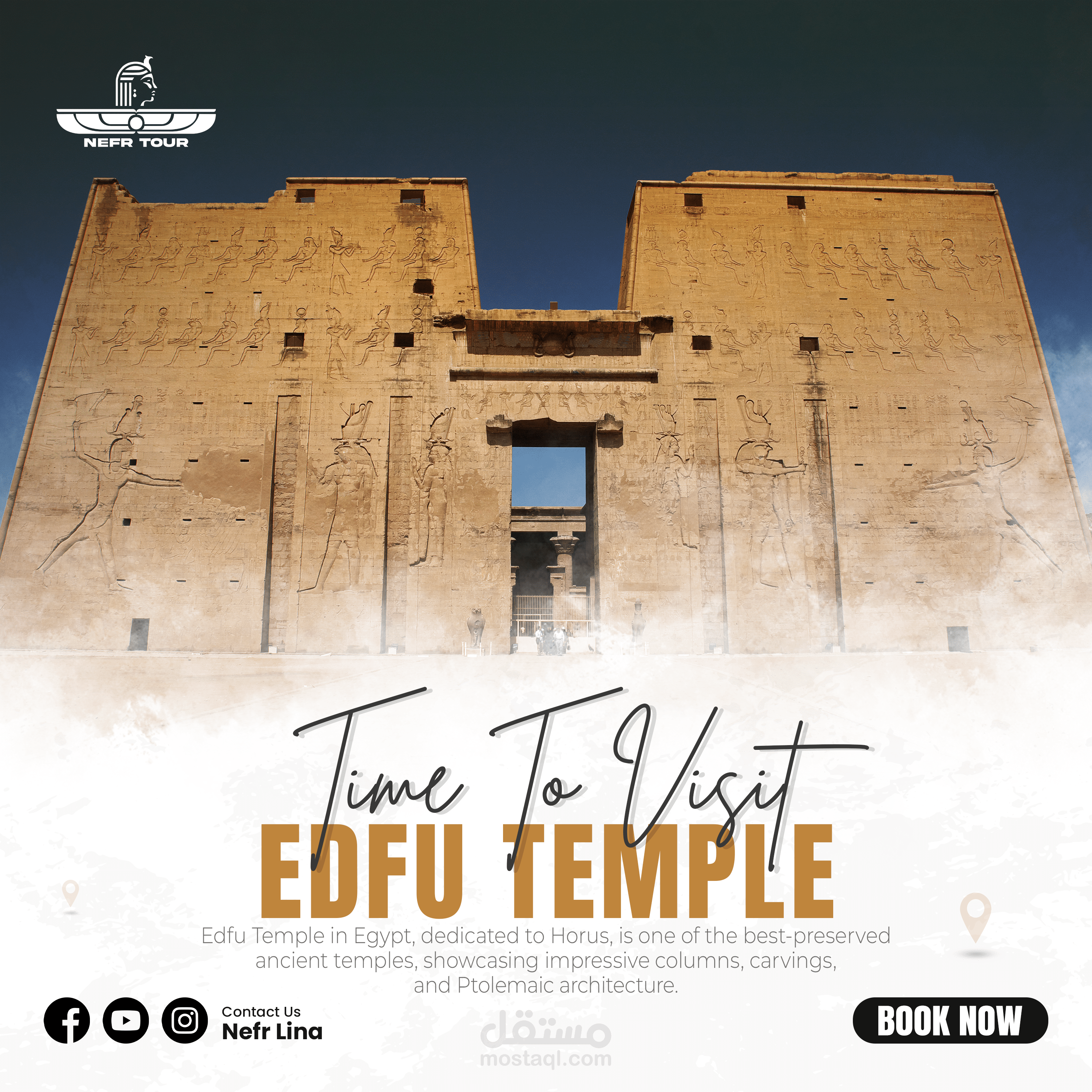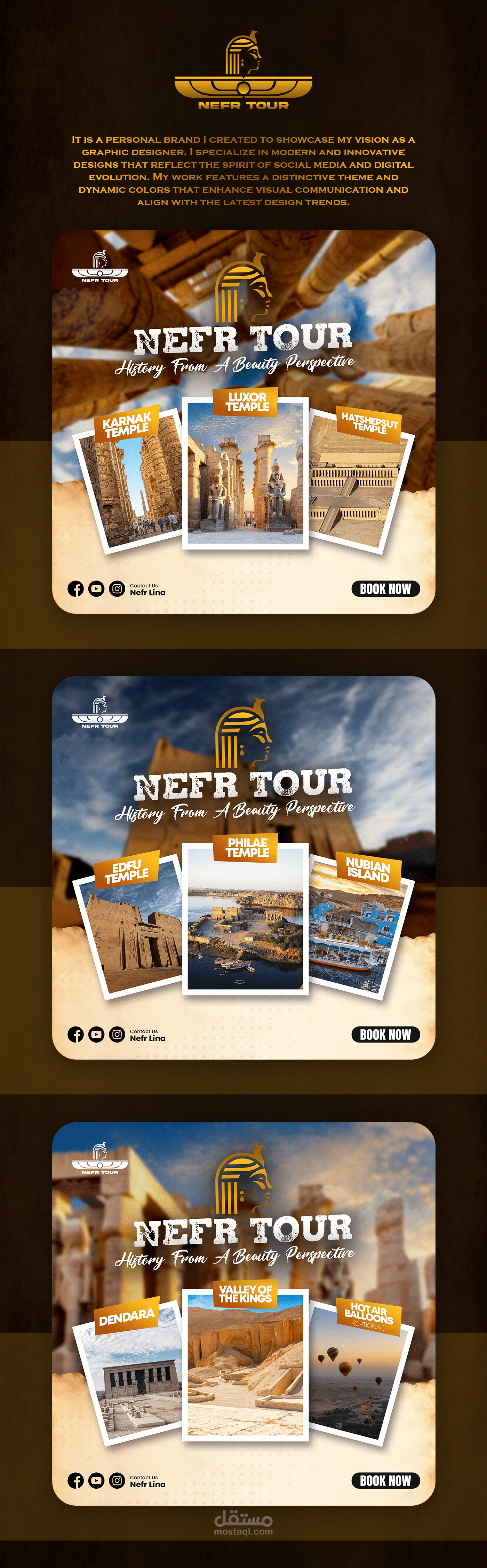 مشروع "Nefr Tour" يهدف إلى بناء هوية بصرية مميزة للوسائط الاجتماعية، تُبرز نشاط الشركة في مجال السياحة / الرحلات، من خلال محتوى بصري جذّاب، تنسيقات مهنية، ورسائل واضحة تُحفّز التفاعل والمشاركة.