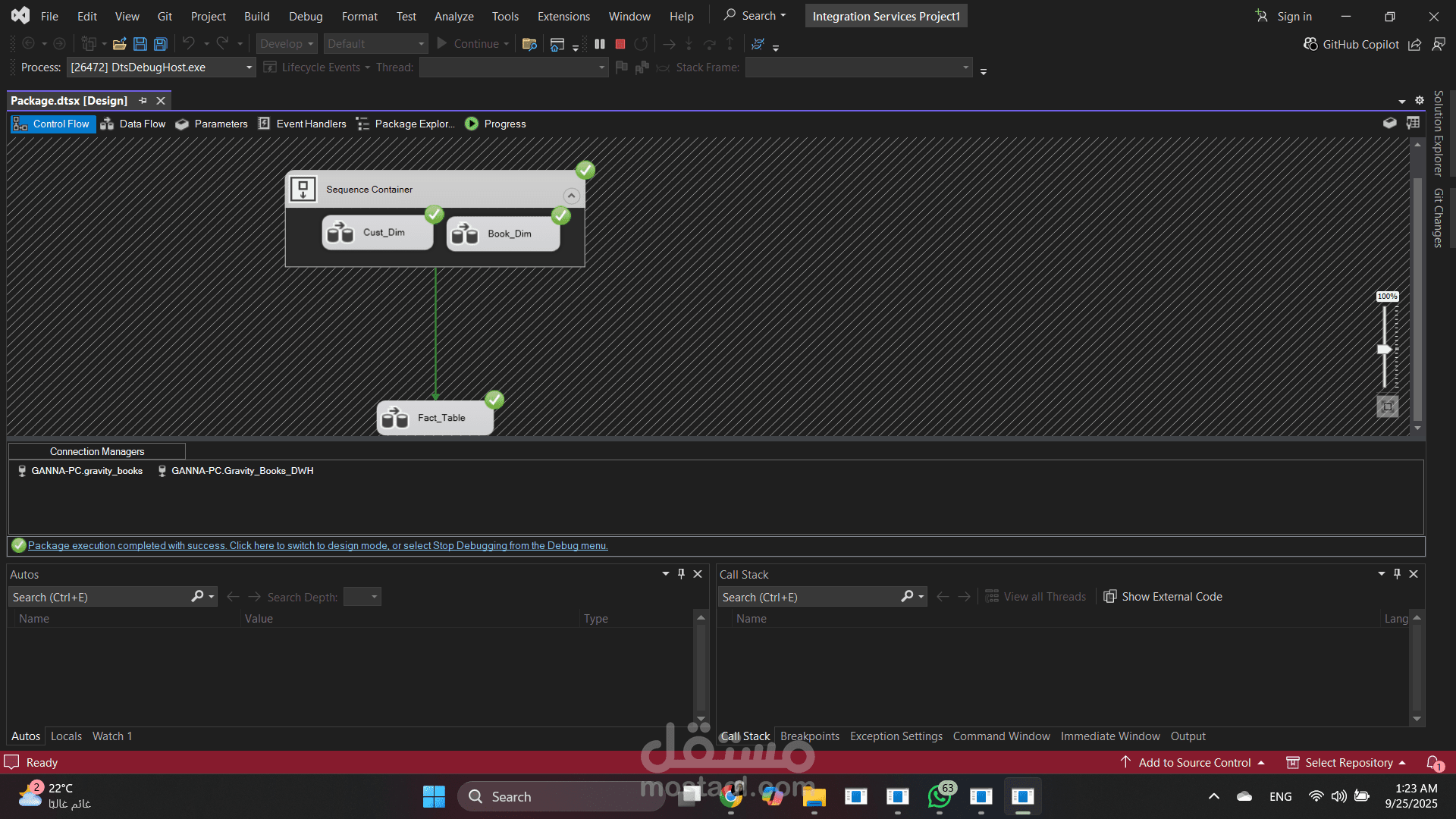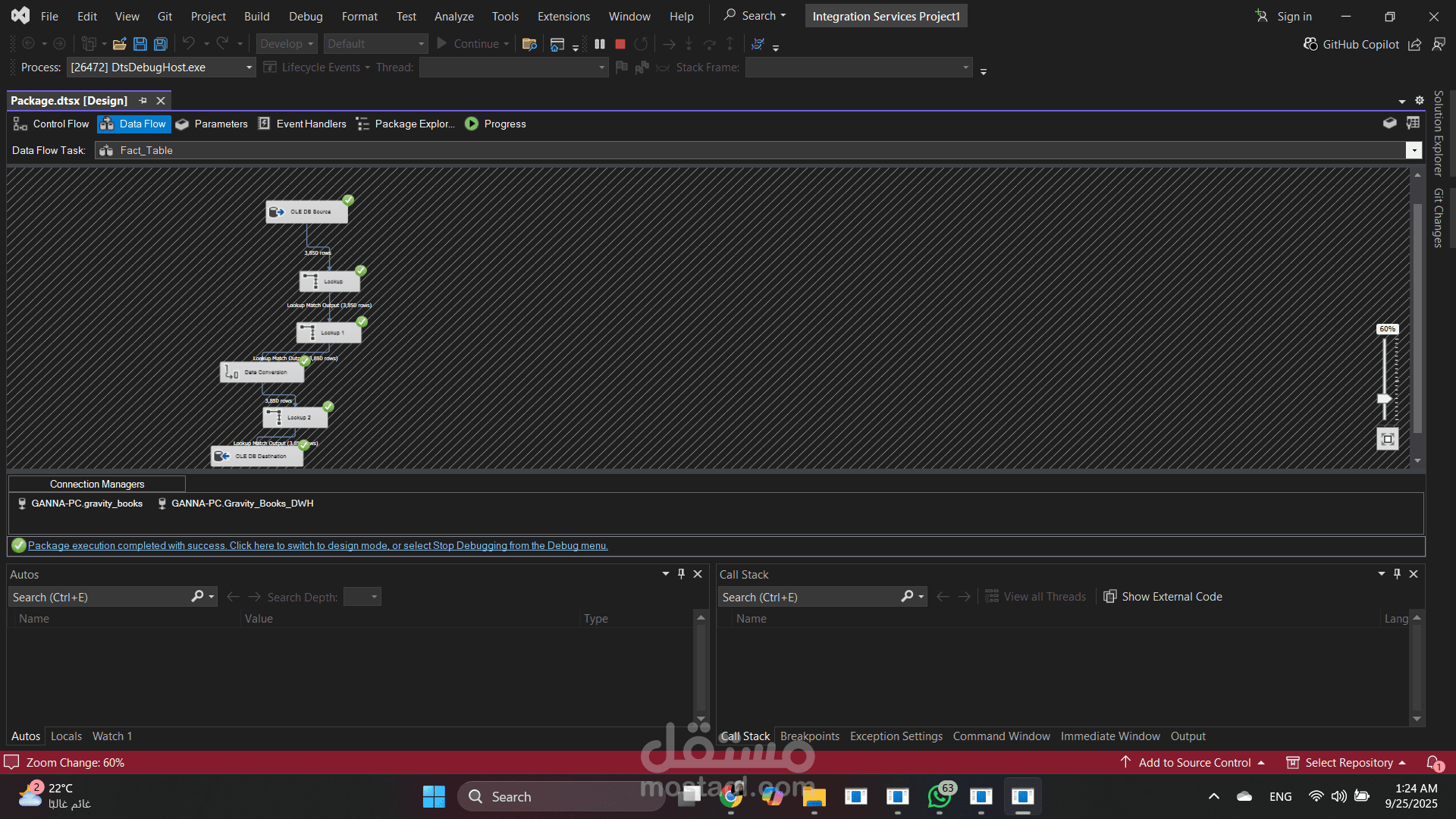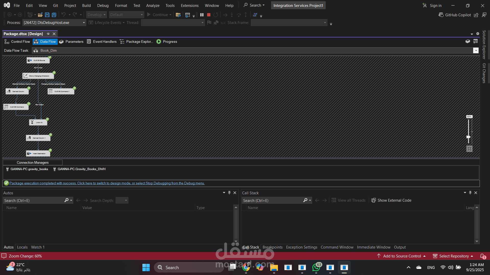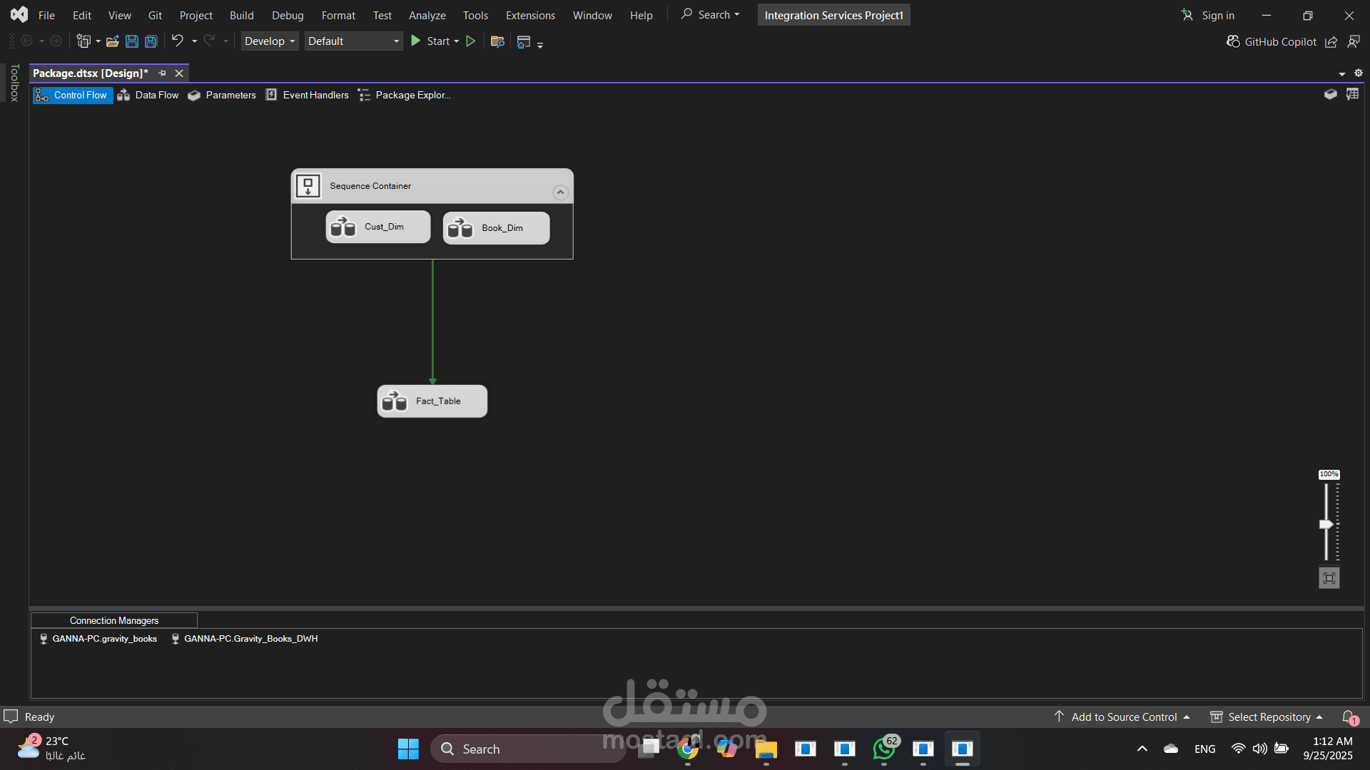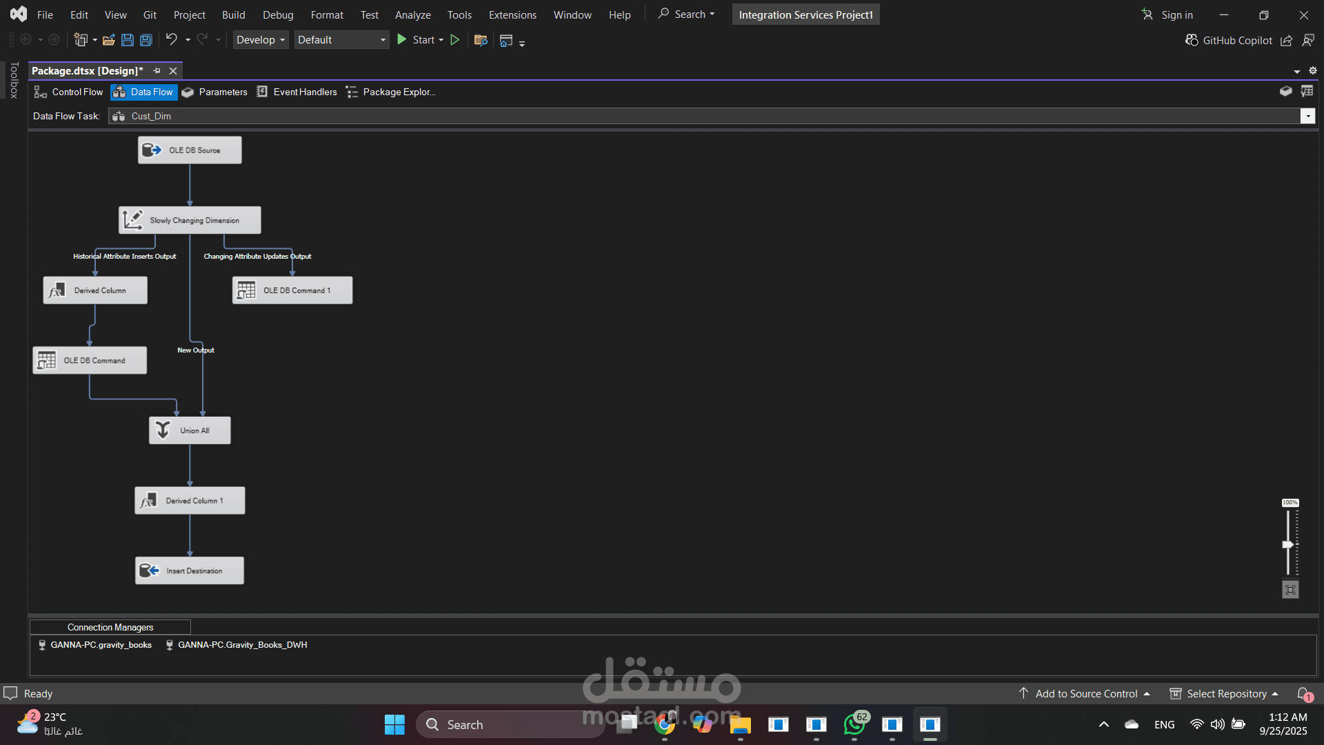 استخدام OLE DB Destination لتحميل البيانات بعد معالجتها إلى قاعدة بيانات اسمها Gravity_Books_DWH.