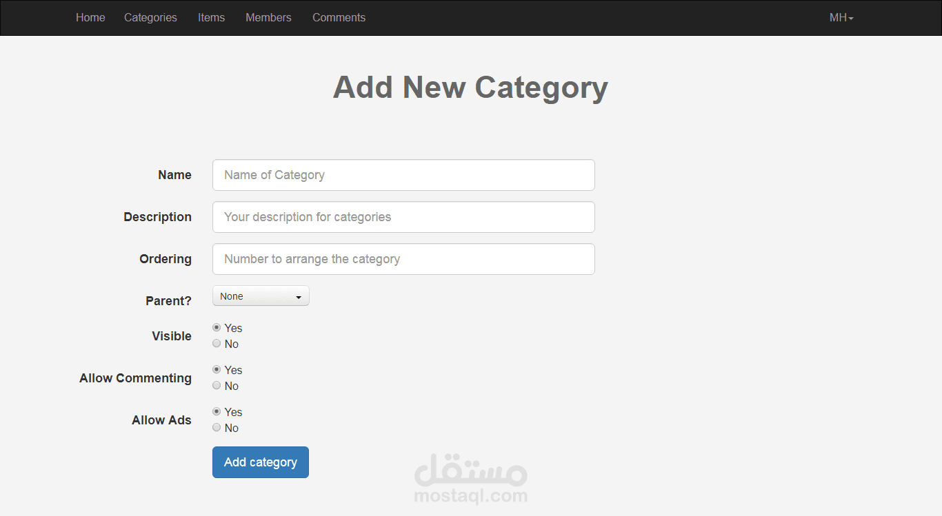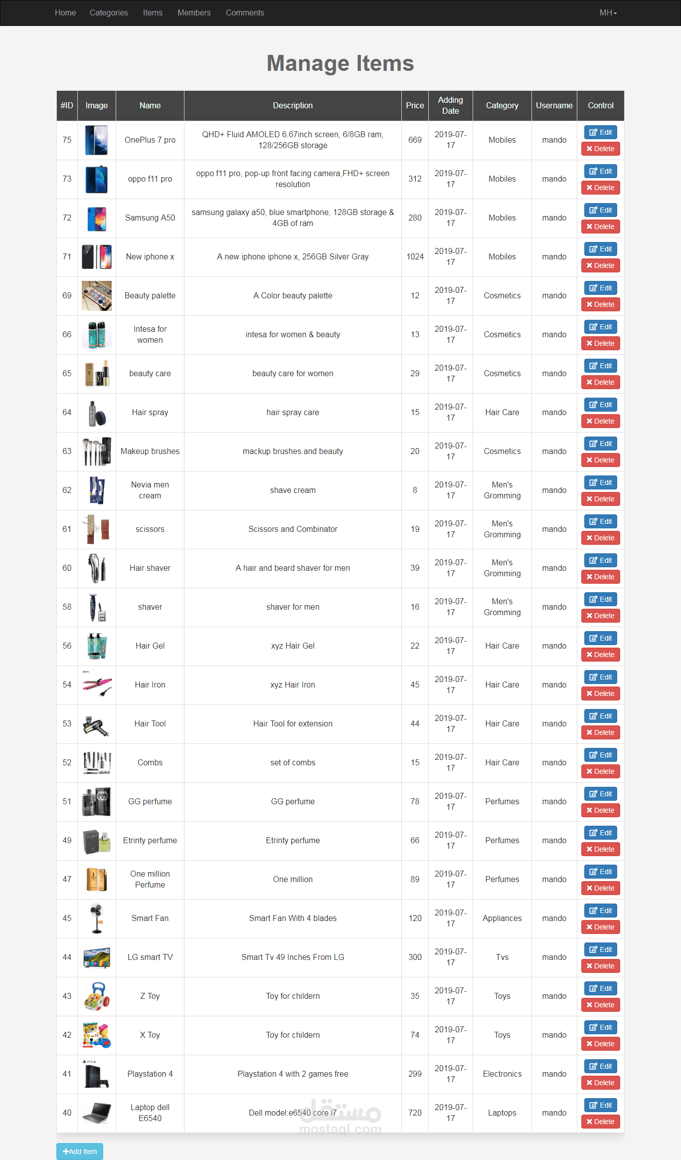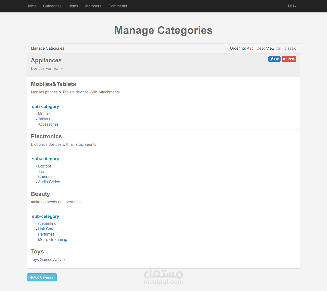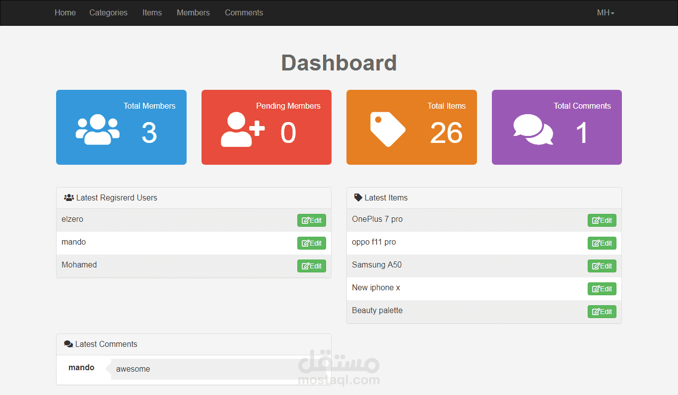 سوق الكتروني يحتوى على لوحه تحكم تشمل (الاعضاء و السلع و الفئات و التعليقات ) و تمتلك كل الصلاحيات لتعديل او حذف او الموافقه على اي شيء .. كل شيء dynamic عن طريق بعض الدوال المصممه لتسريع العمل