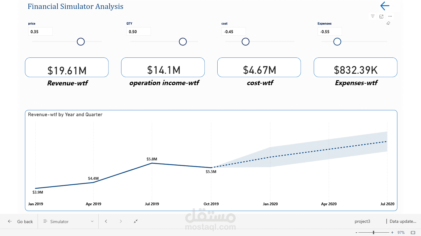 Interactive Financial Analysis & Simulator Dashboard in Power BI to help businesses make smarter, data-driven decisions.
