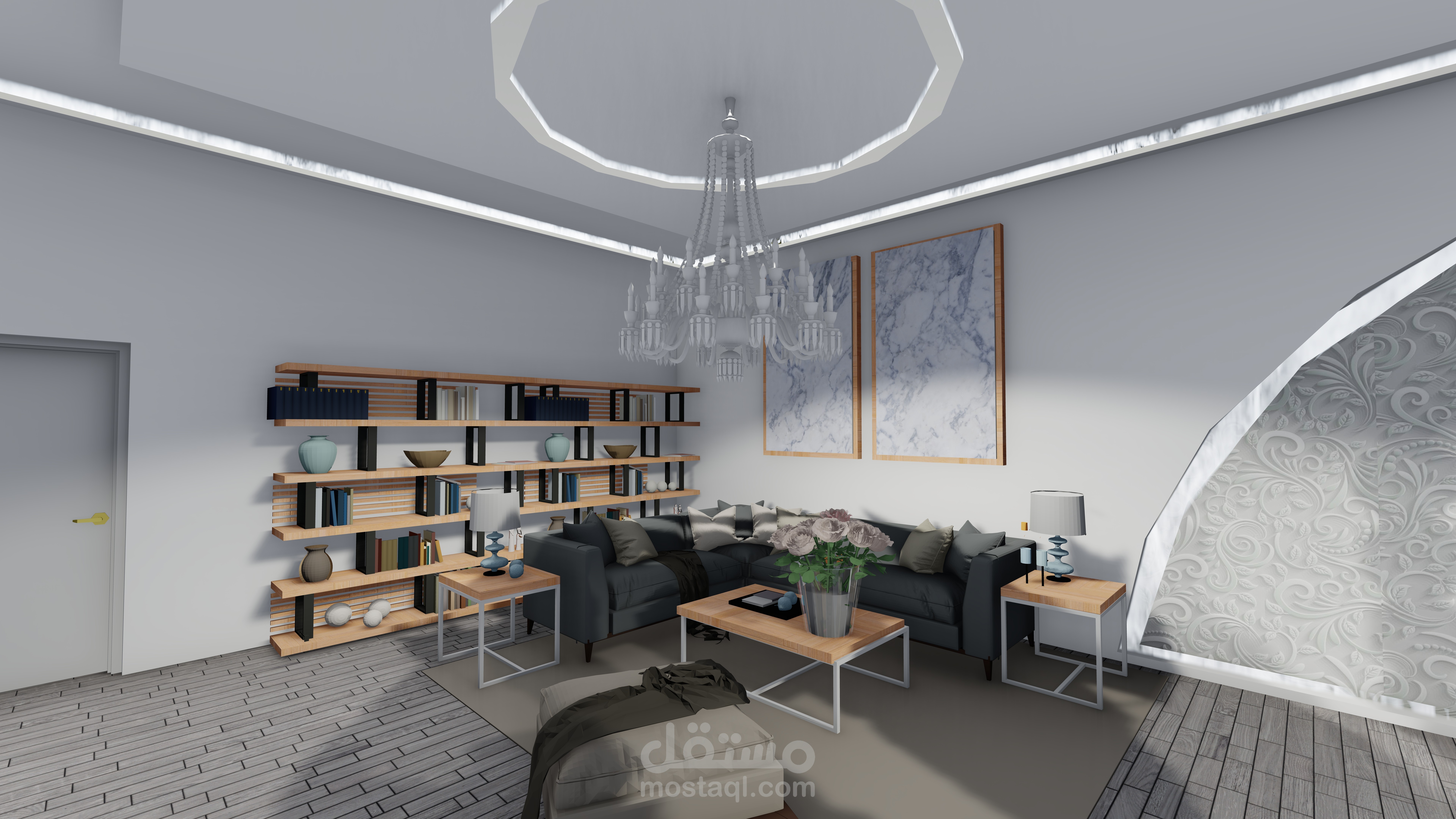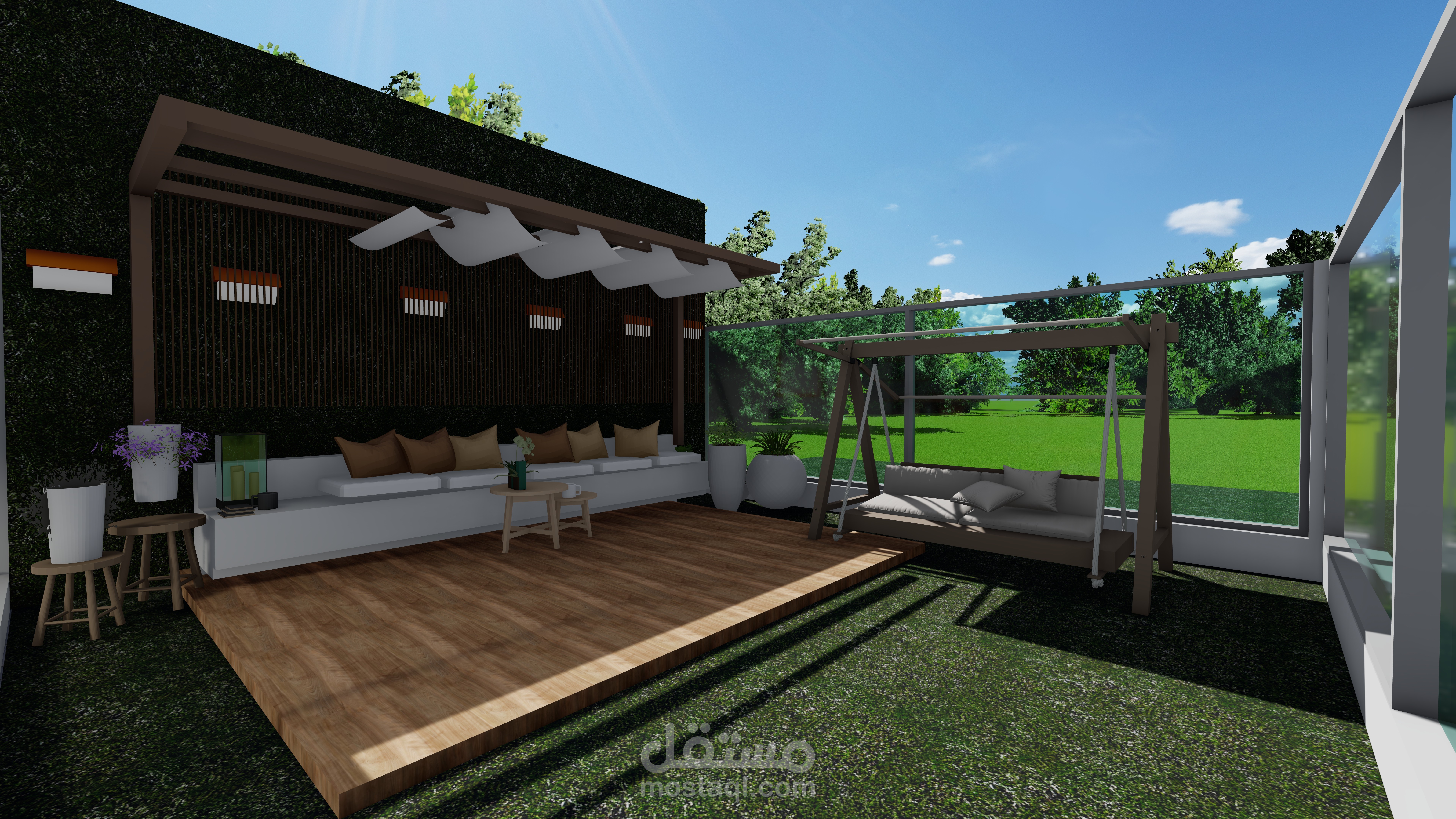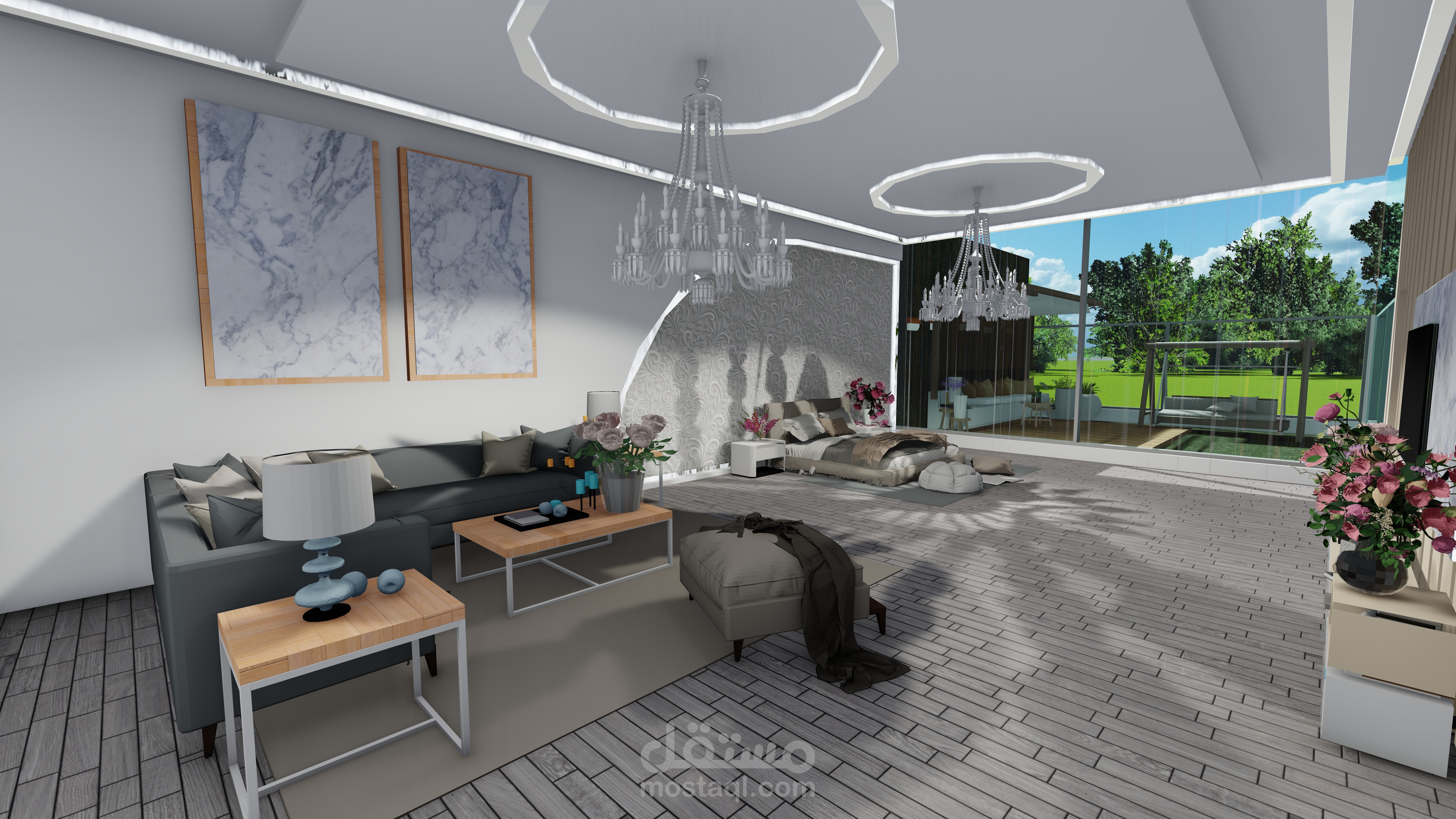 يرتكز تصميم البيت السكني على الطراز المودرن الذي يعكس البساطة والعملية، مع إبراز الخطوط الواضحة والفراغات المفتوحة لخلق بيئة مريحة ومعاصرة تناسب أسلوب الحياة الحديث.