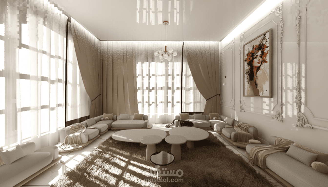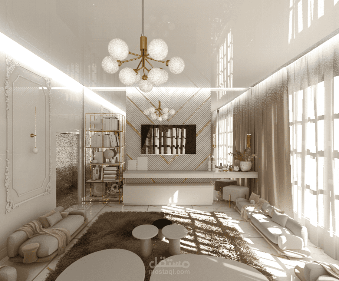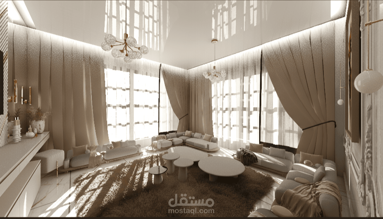 يرتكز تصميم البيت السكني على الطراز المودرن الذي يعكس البساطة والعملية، مع إبراز الخطوط الواضحة والفراغات المفتوحة لخلق بيئة مريحة ومعاصرة تناسب أسلوب الحياة الحديث.