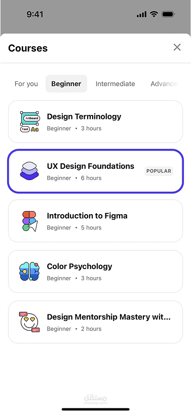 قمت بتصميم واجهات مستخدم (UI) وتجربة مستخدم (UX) لتطبيقات موبايل باستخدام Figma و Adobe XD مع التركيز على: