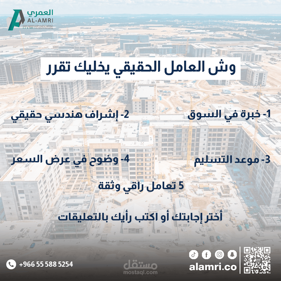 تم تنفيذ مجموعة من تصميمات السوشيال ميديا لشركة العمري للمقاولات، بما يتوافق مع الهوية البصرية الرسمية للشركة من حيث الألوان، الخطوط، والأسلوب العام للتصميم.