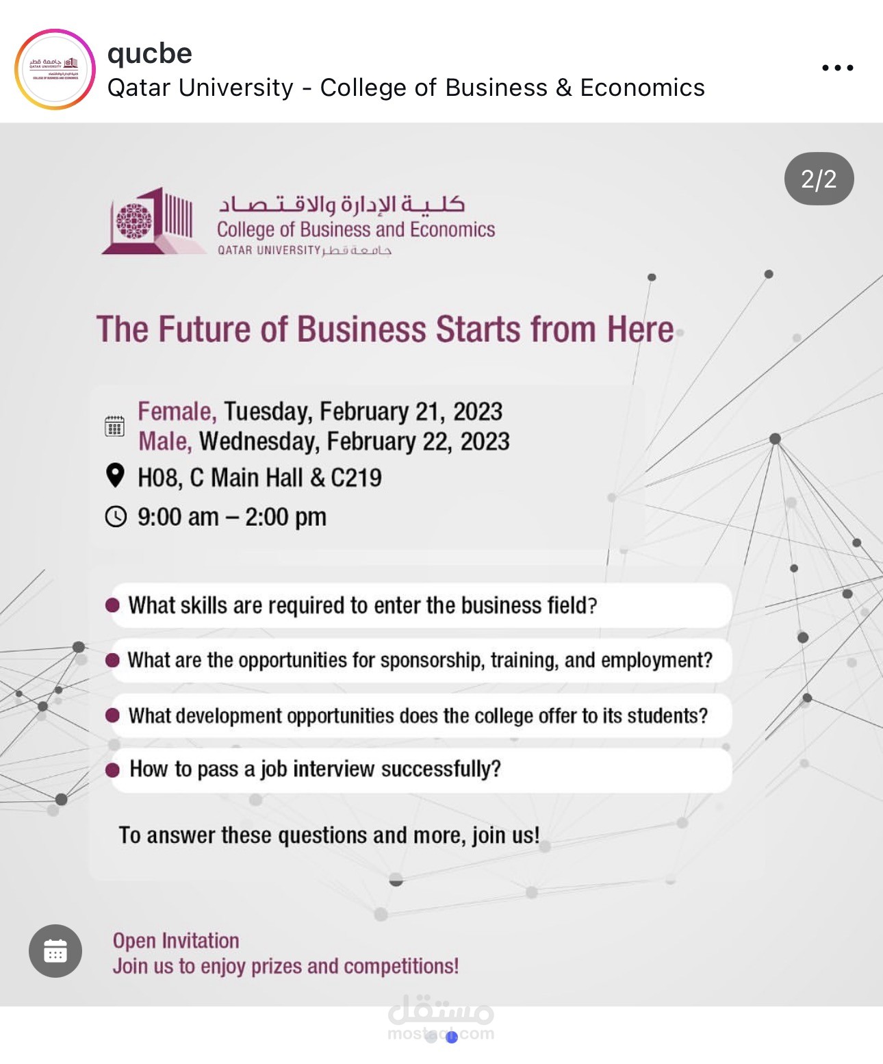 النتيجة: تضاعف معدلات التفاعل والوصول، وزيادة ملحوظة في تفاعل الطلاب على كلٍّ من الموقع الإلكتروني وقنوات التواصل الاجتماعي (إنستغرام: qucbe)، بالإضافة إلى هوية رقمية أقوى وأكثر مهنية للكلية.