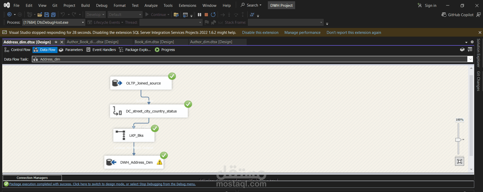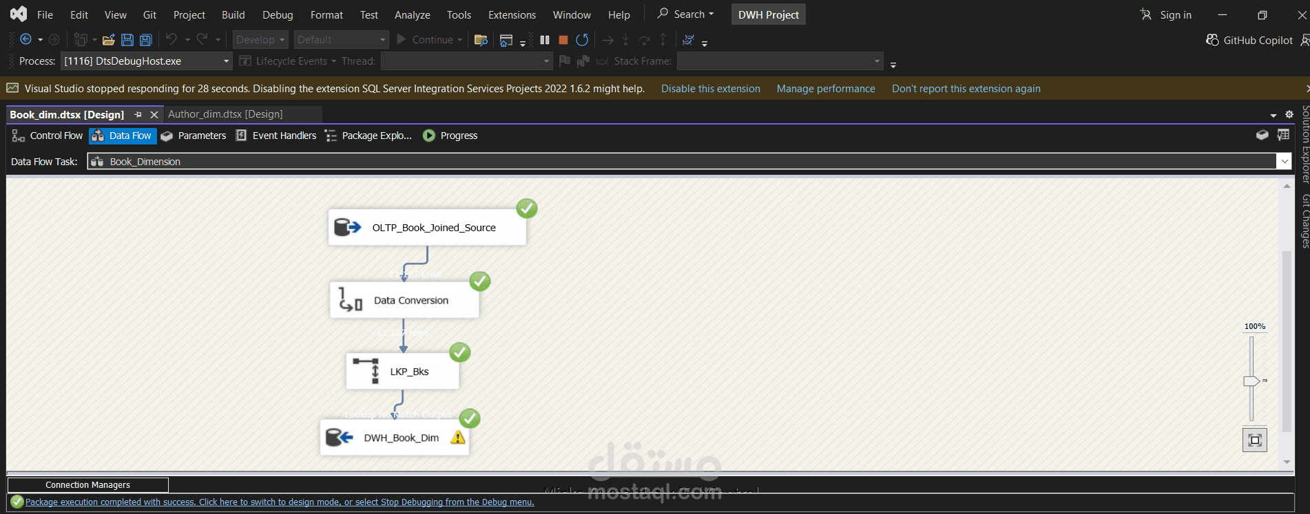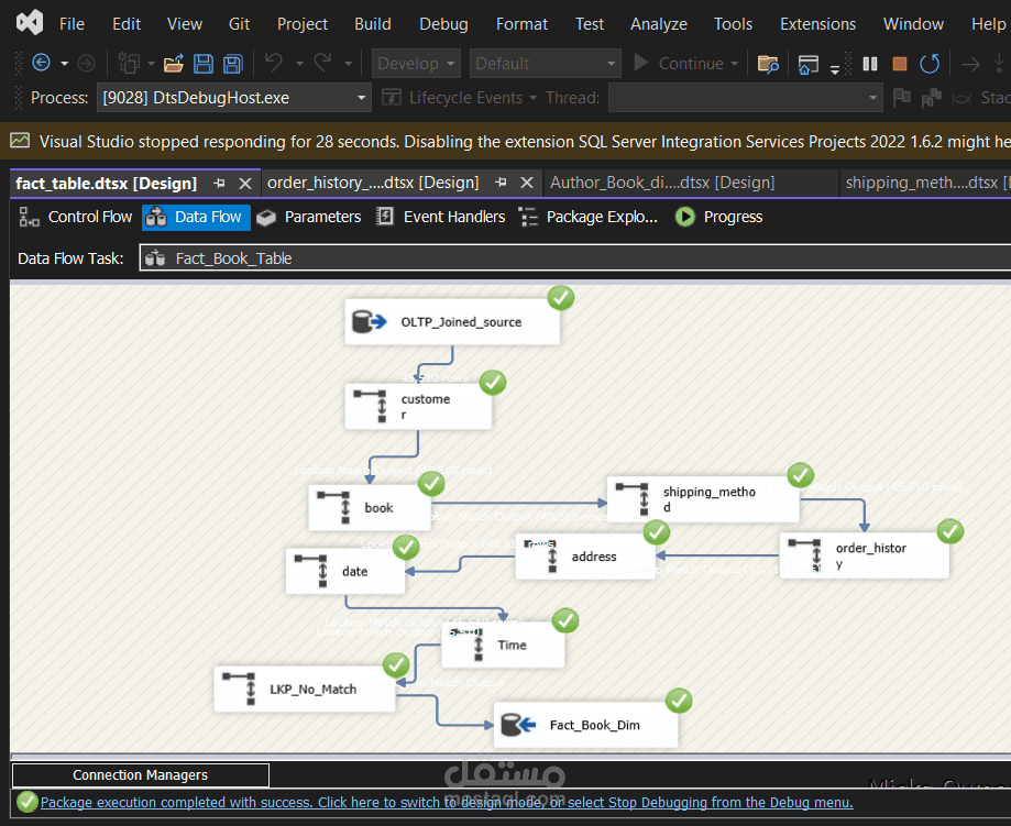 قمت بتصميم وتطوير Data Warehouse خاص بمبيعات الكتب باستخدام أداة SSIS، بهدف تحويل البيانات الخام إلى بيانات منظمة تدعم التحليل وإعداد التقارير.