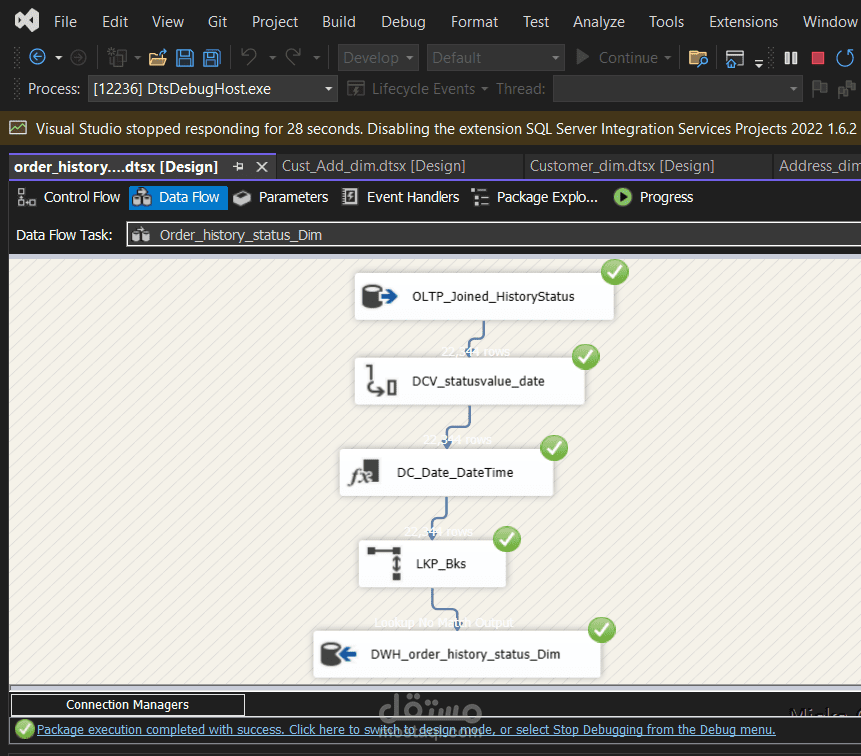 استخدام SSIS في عمليات ETL (Extract, Transform, Load) لمعالجة البيانات ونقلها.