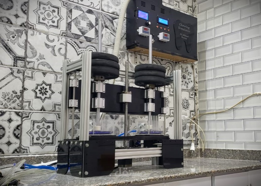 This project was designed and manufactured as a specialized testing machine for dental research, capable of simulating chewing cycles under realistic conditions. It combines precision mechanical design with custom electronics and software to deliver a reliable long-term testing solution.