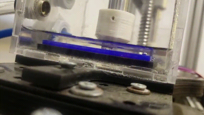 The testing environment features a clear acrylic sample bath for full visibility of the test area. A continuous water circulation system prevents particle buildup and maintains consistent conditions, while an integrated heater and controller keep the water at 37 °C to replicate human body temperature.