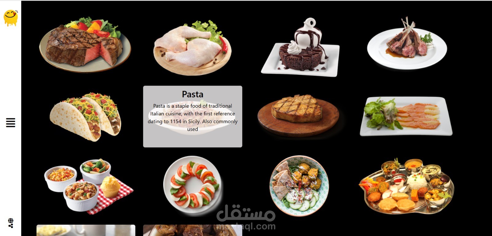 موقع ويب لمطعم يحدد اختيار اكله ما عن طريق كتابه اسمها ف مربع البحث وتظهر له جميع الاكلات المتوافقة معه وجميع المعلومات عن هذه الاكله وهذا يوفر علي المستخدم ف وقته وطلبه للطعام كما يوفر فيديو لمعرفه طريقه تحضيرها