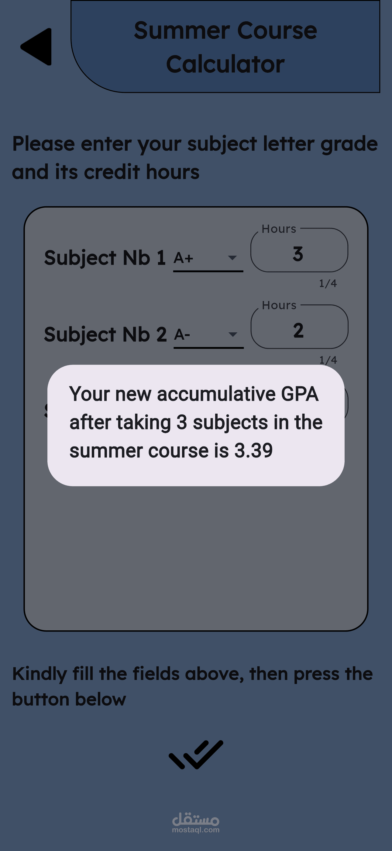 طورت تطبيقًا للهواتف المحمولة قائمًا على Flutter ومصممًا خصيصًا لطلاب Future Academy لحساب وتوقع وتتبع المعدل التراكمي (GPA) على مدار عدة فصول دراسية. يتميز التطبيق بتوقع المعدل التراكمي وتحويل الدرجات الحرفية وحساب عدة فصول دراسية وتخطيط الدورات الصيفية، كل ذلك من خلال واجهة سهلة الاستخدام وسريعة الاستجابة.