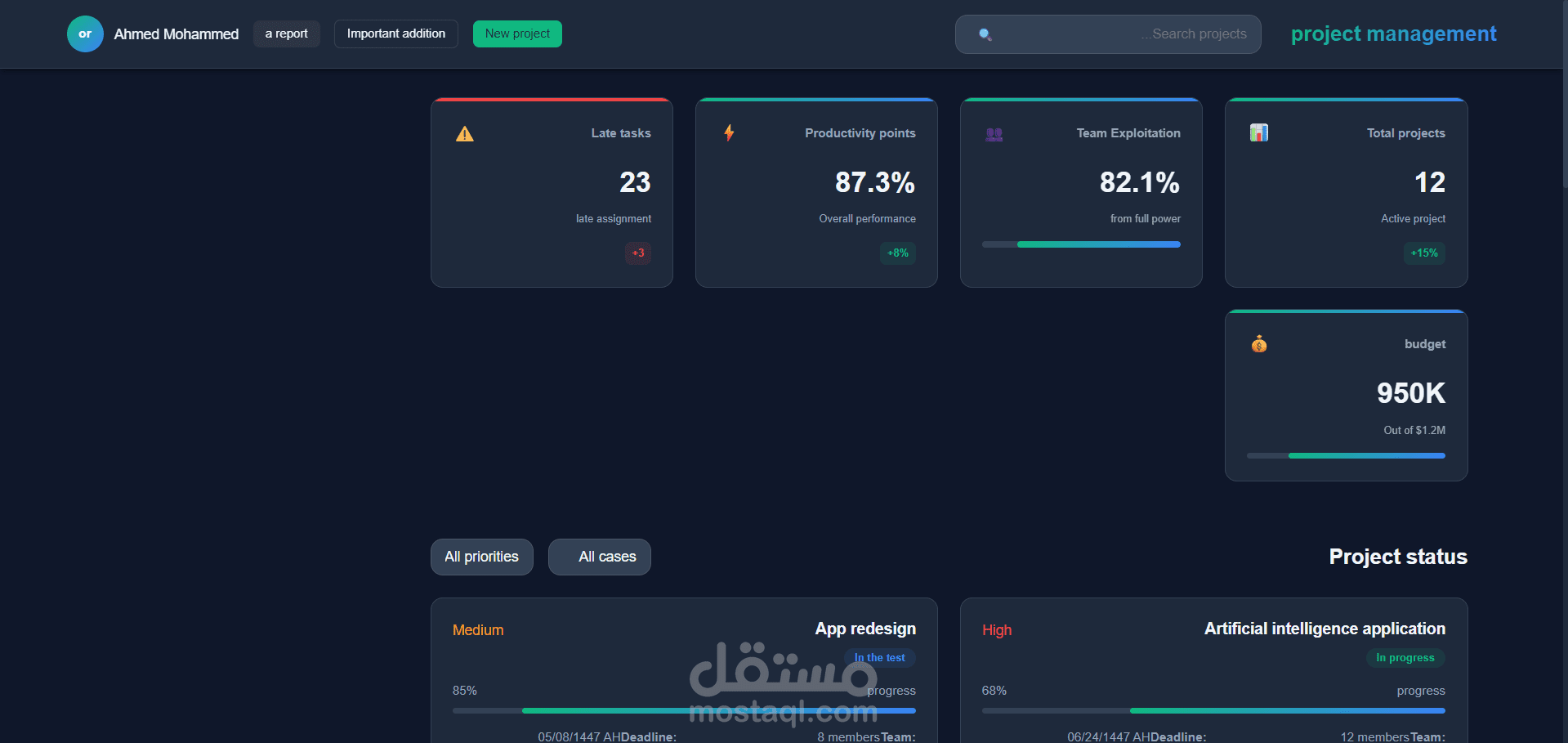 نظام متابعة مشاريع بواجهة حديثة ومتطورة