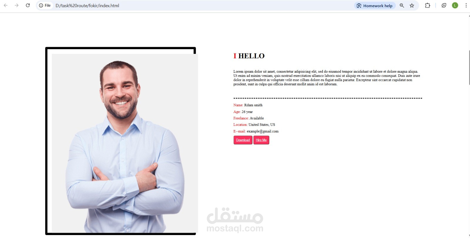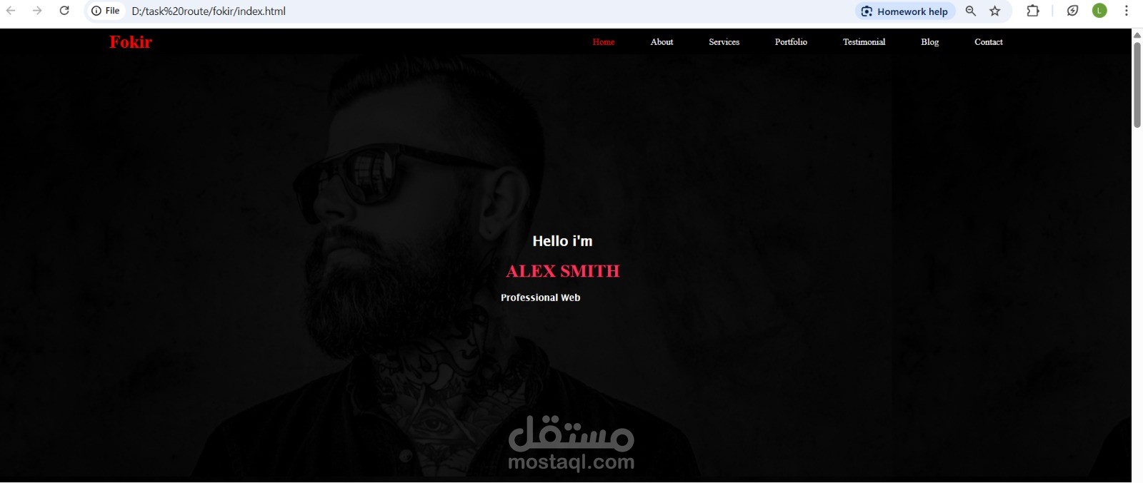 صفحه شخصيه تم تصميمها لعرض المهارات والخبرات والأعمال السابقه المطور