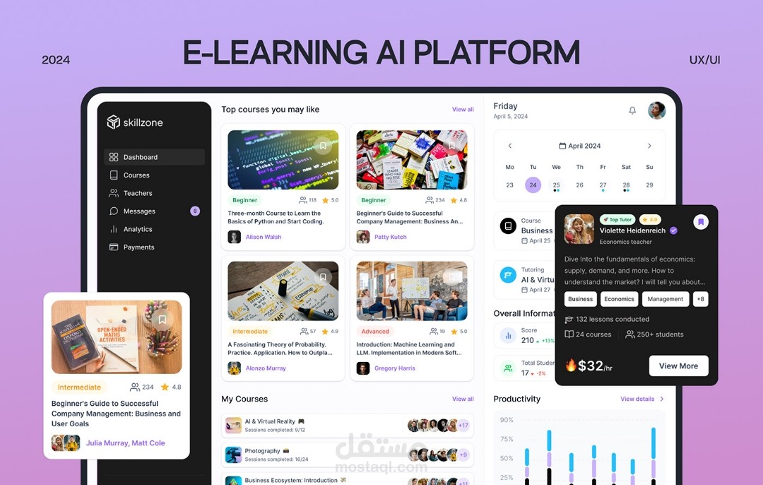 أركز على توفير تجربة مستخدم سلسة، مع تصميم واجهات تفاعلية، أنظمة تسجيل ومتابعة المتدربين، وإدارة الدروس والفصول الافتراضية.
