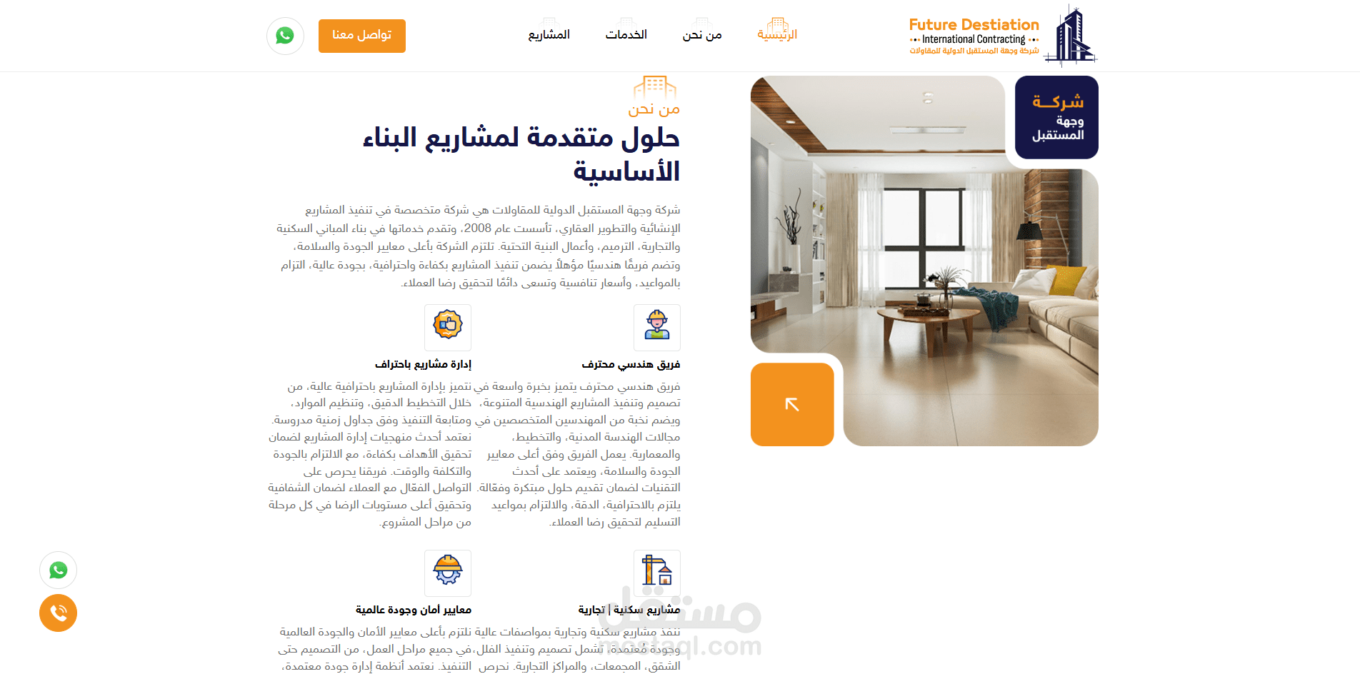 إلكتروني مخصص لشركة مقاولات هندسية، يتميز بتصميم احترافي ومتجاوب مع مختلف الأجهزة، ويعرض معلومات عن الشركة وخدماتها الهندسية والمشاريع السابقة بشكل منظم وجذاب.