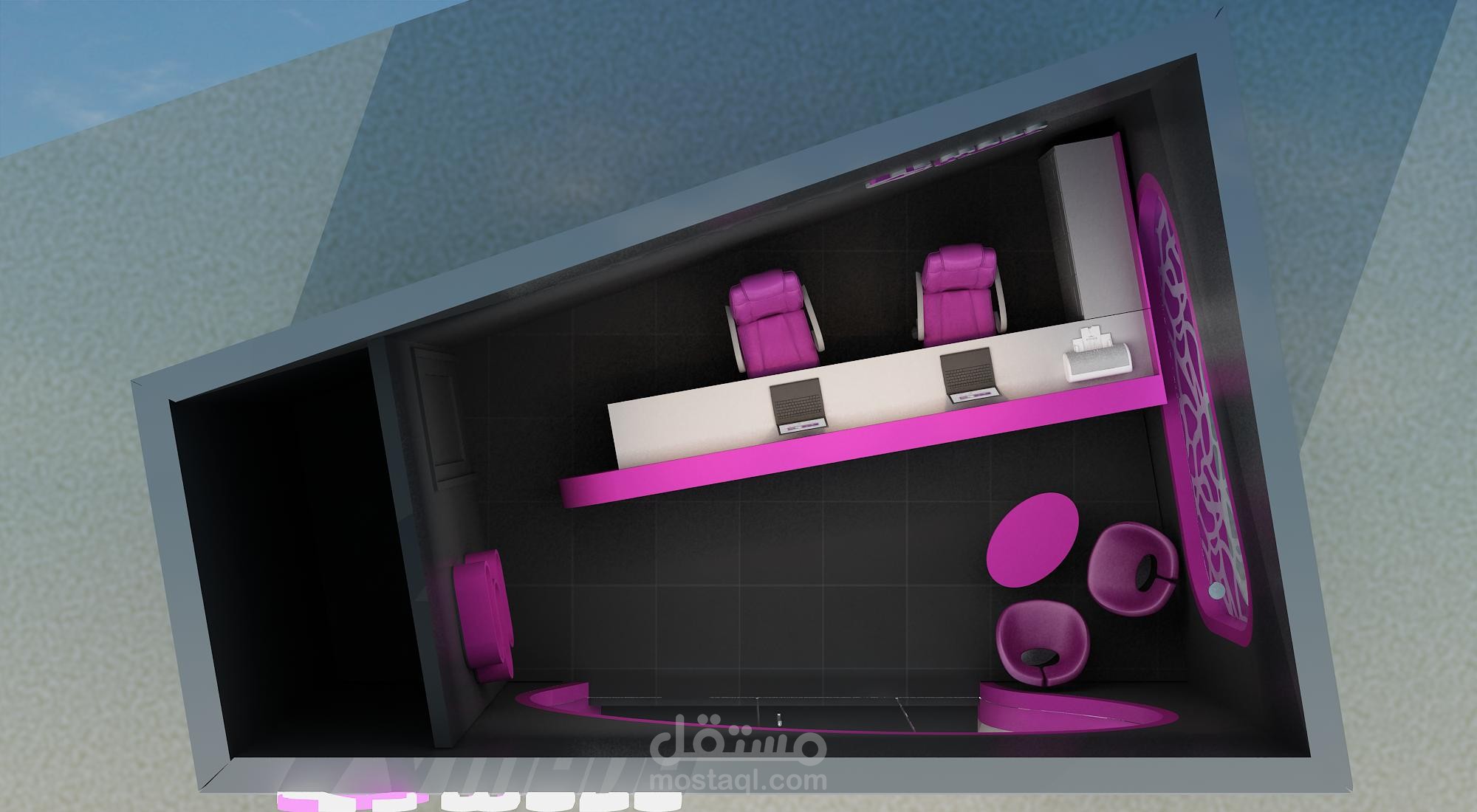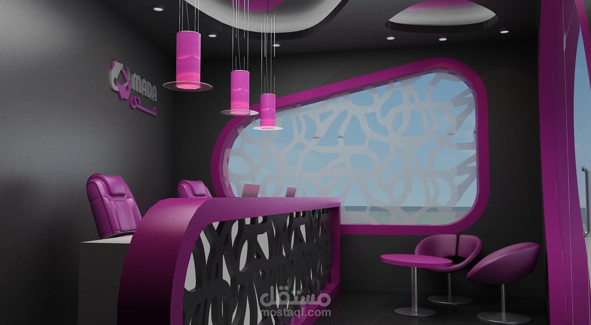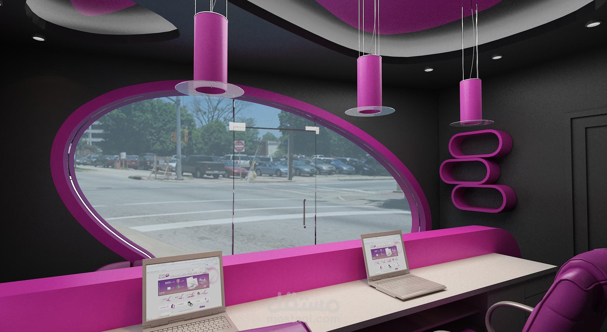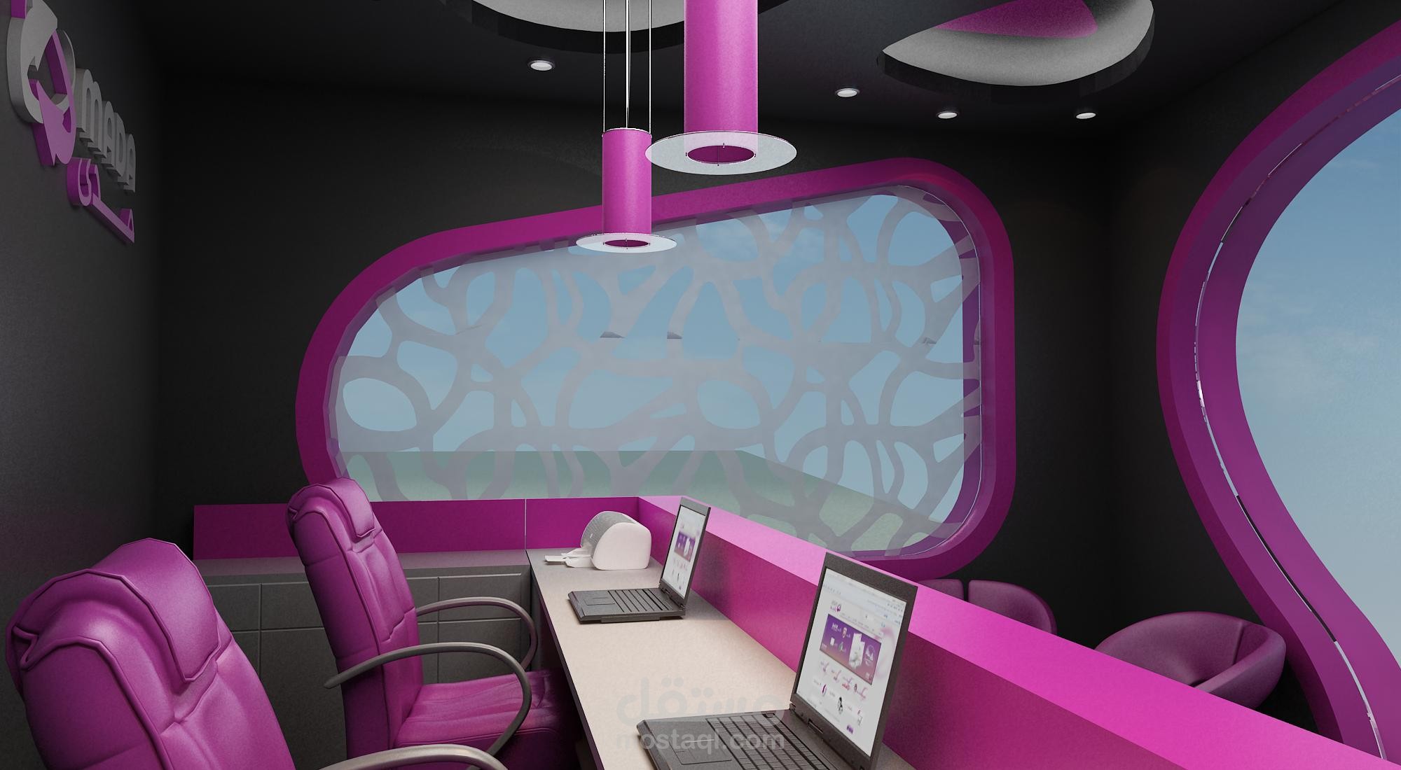 تم إنجاز التصميم الداخلي لشركة خدمات انترنت، مع إعداد المخططات التنفيذية والتفصيلية والإشراف على التنفيذ