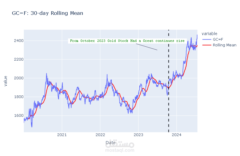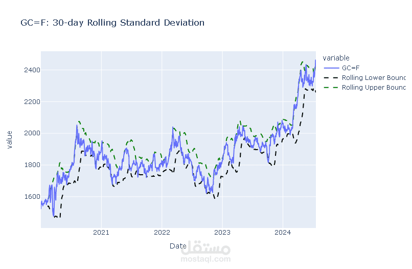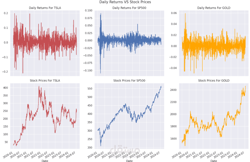 Data Collection: Historical price data is fetched from Yahoo Finance using the yfinance library for the symbols GC=F, AAPL, MSFT, SPY, and TSLA, spanning from January 1, 2020, to the present (dynamically set to the current date).