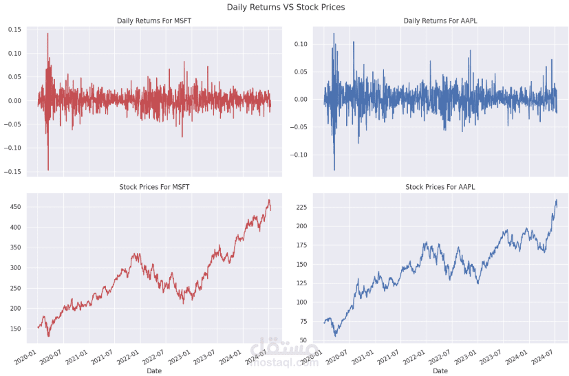 Daily Returns: Calculated as the percentage change in adjusted closing prices to assess day-to-day volatility.