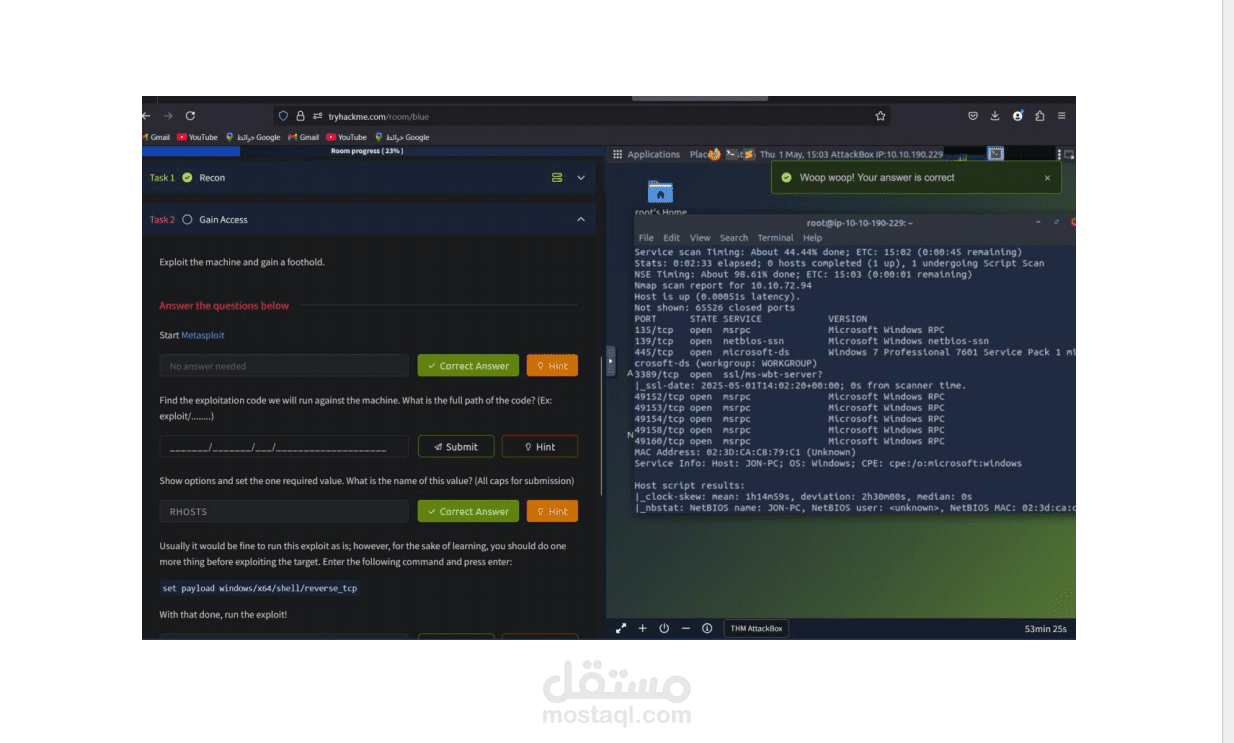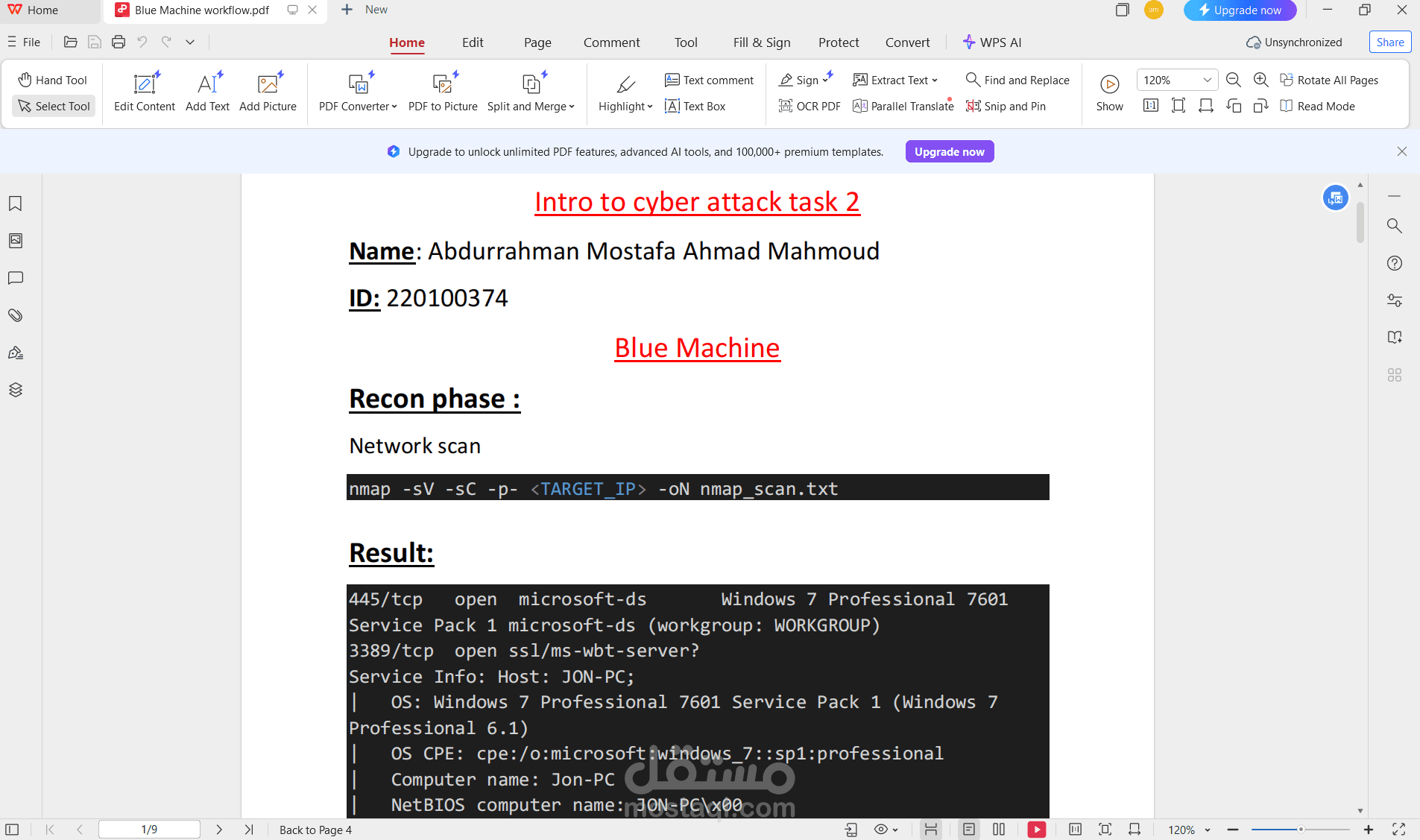 network scanning using tool nmap and monitor by wire shark and vulnerability scanning like eternal blue in windows 10