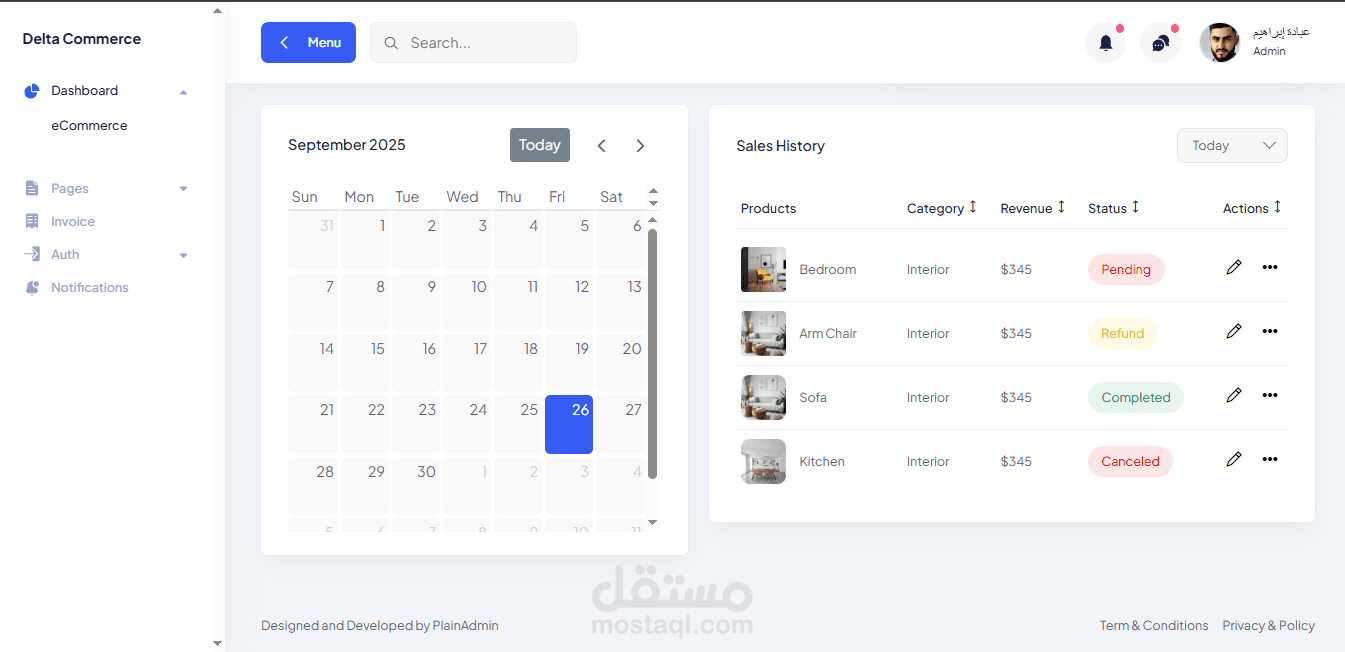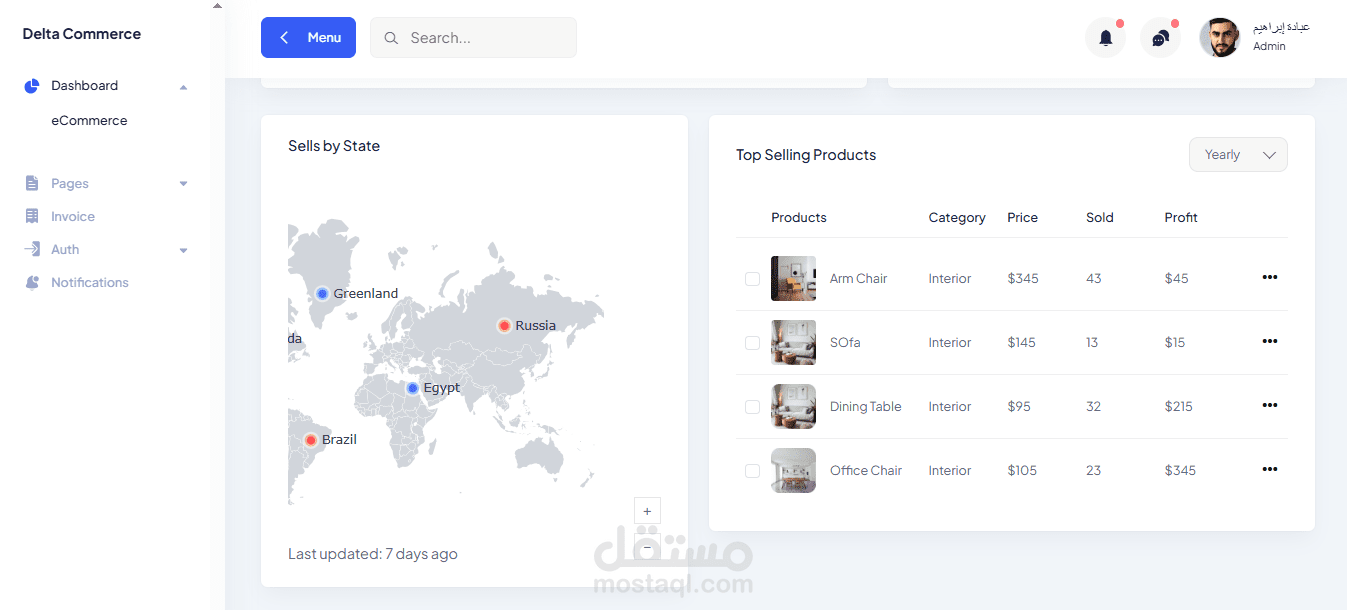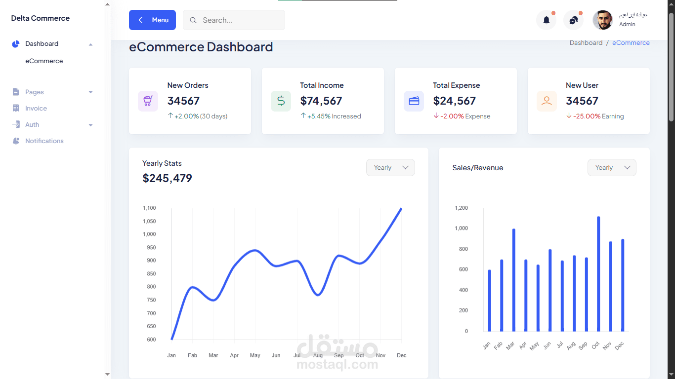 لوحة تحكم تفاعلية متكاملة لإدارة متجرك الإلكتروني بسهولة، تعرض لك إحصائيات المبيعات، المنتجات، العملاء، والطلبات بواجهة بسيطة وسهلة الاستخدام، لمساعدتك على متابعة أعمالك وتنميتها بكفاءة.