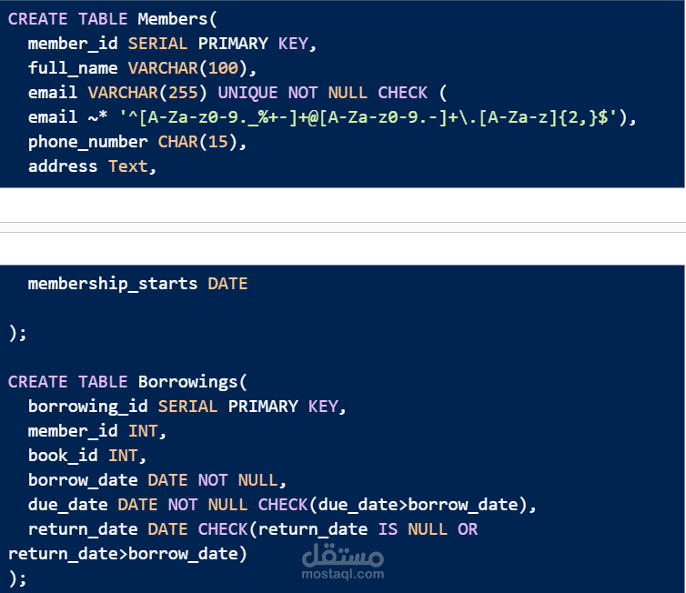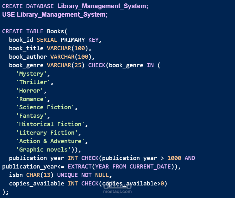 This project involved designing and implementing a relational database for a library management system. The process included: