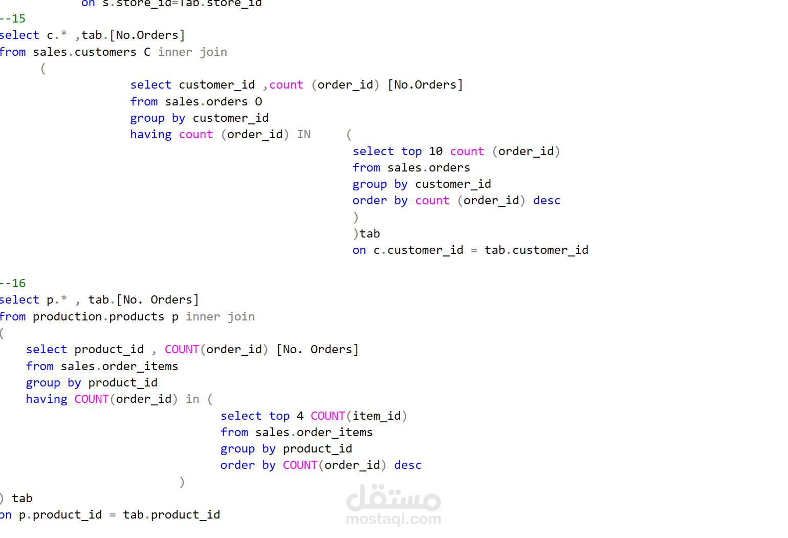 قمت بكتابة استعلام (Query) باستخدام SQL لاستخراج وتحليل بيانات من قاعدة بيانات.