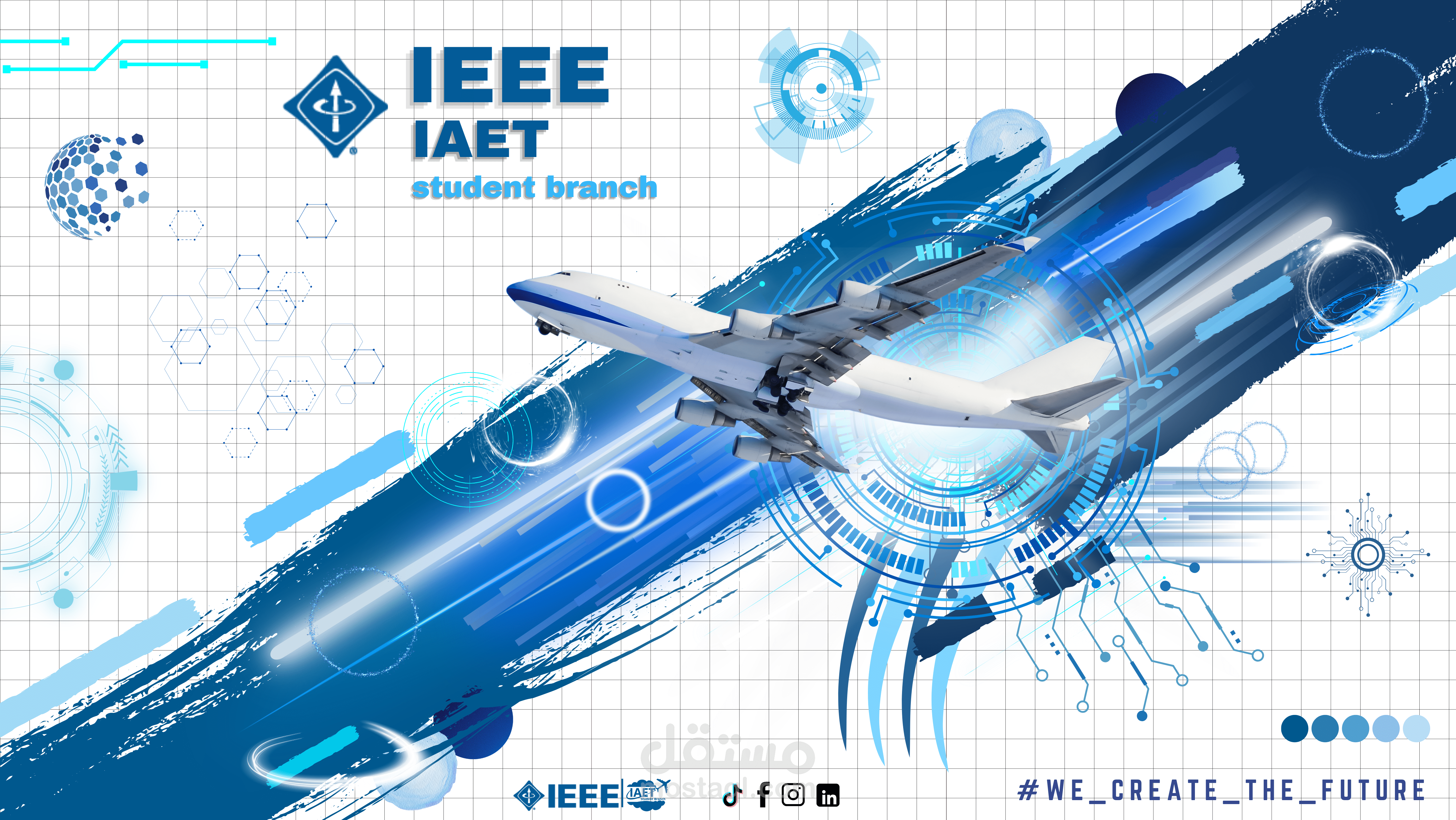 بوستر cover Facebook لصفحه نشاط طلابى ieee iaet يحتوى على رمز لهويه المكان وهو الطيران