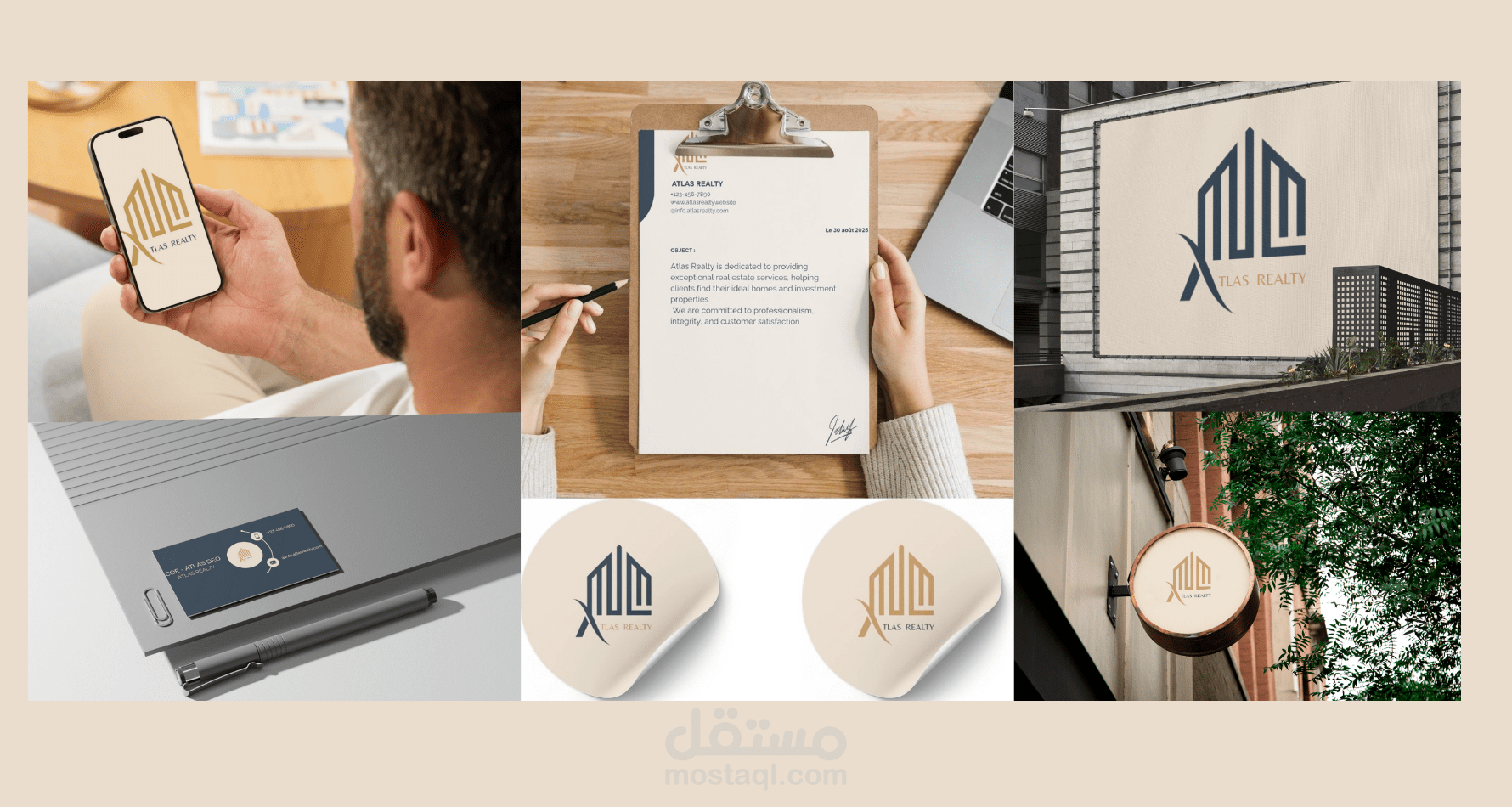 تم تصميم هوية بصرية كاملة لمشروع عقاري فاخر باسم Atlas Realty، تهدف إلى تجسيد الثقة، الاحترافية، والاستقرار في سوق العقارات. تتضمن الهوية: