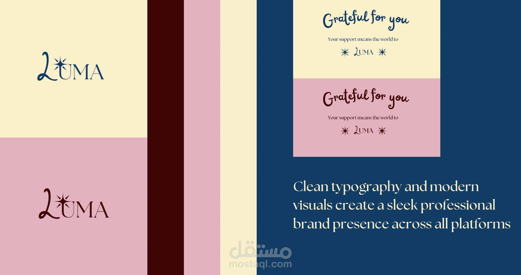 تم تصميم هوية بصرية متكاملة لشركة ملابس عصرية تُدعى Luma، تهدف إلى التعبير عن الأناقة، الحداثة، وروح الموضة الشابة. تتضمن الهوية: