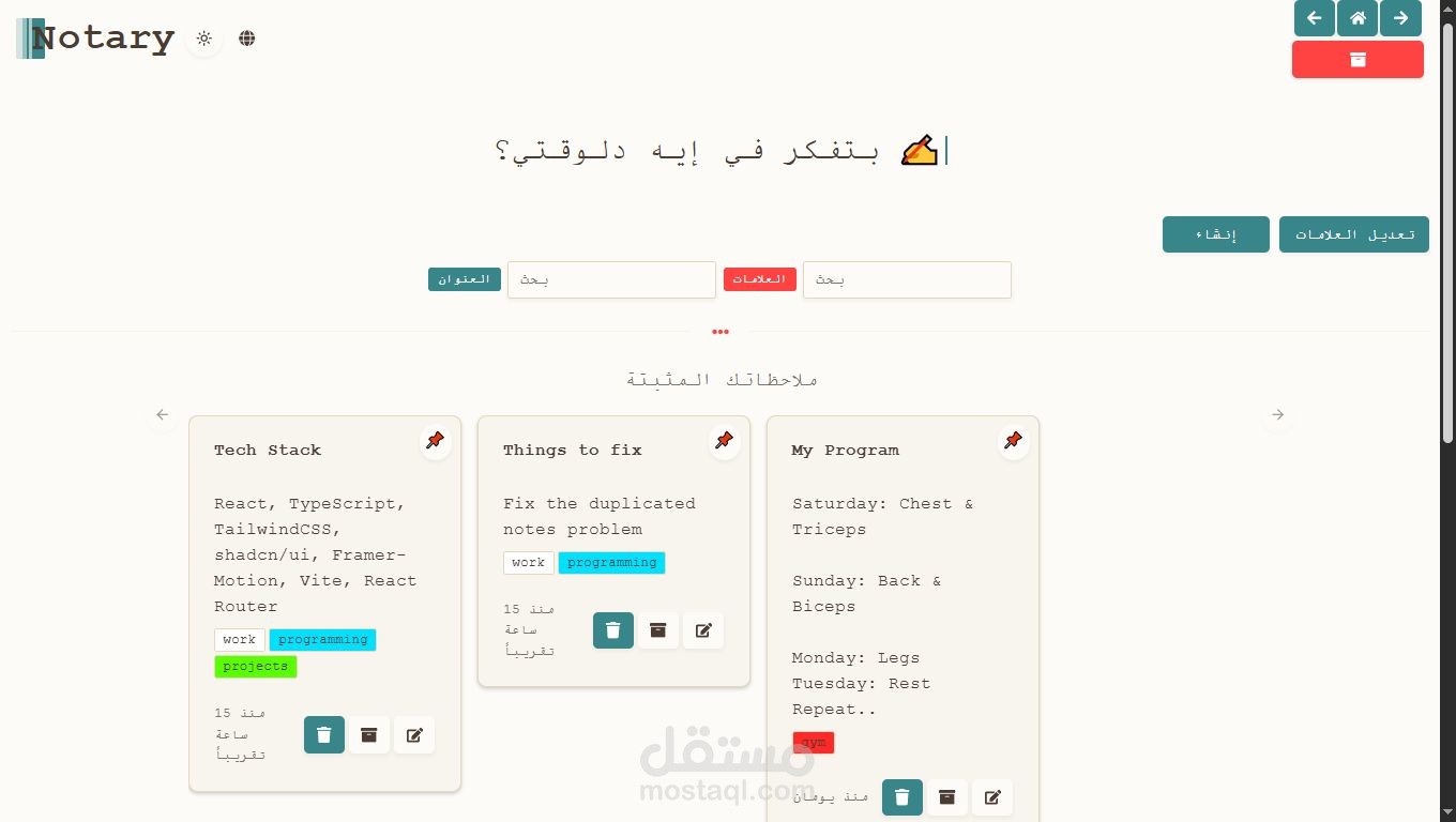 • البحث السريع عن الملاحظات من خلال العنوان أو الوسوم.