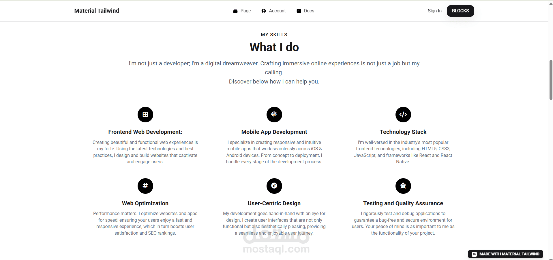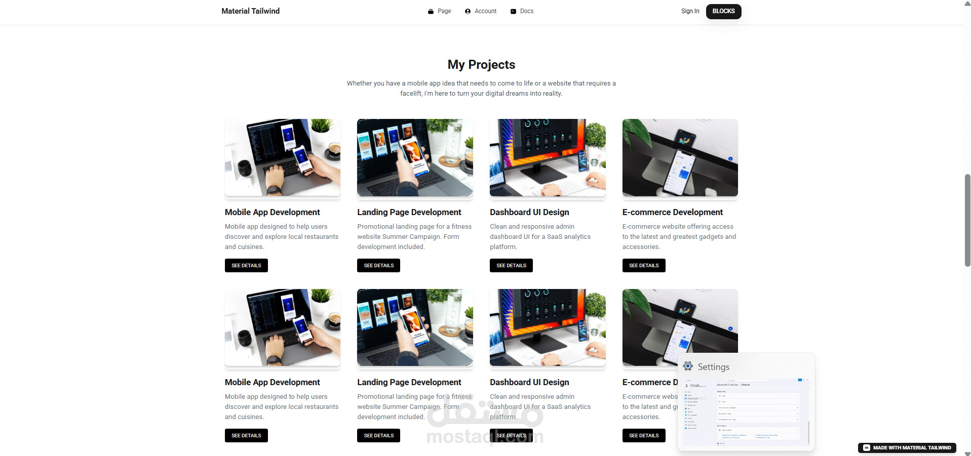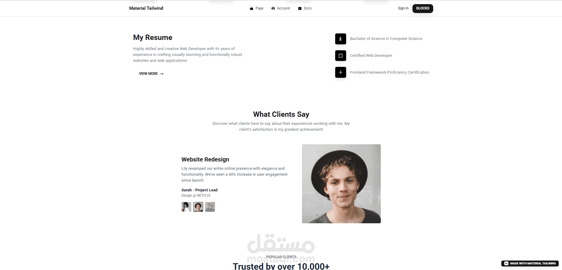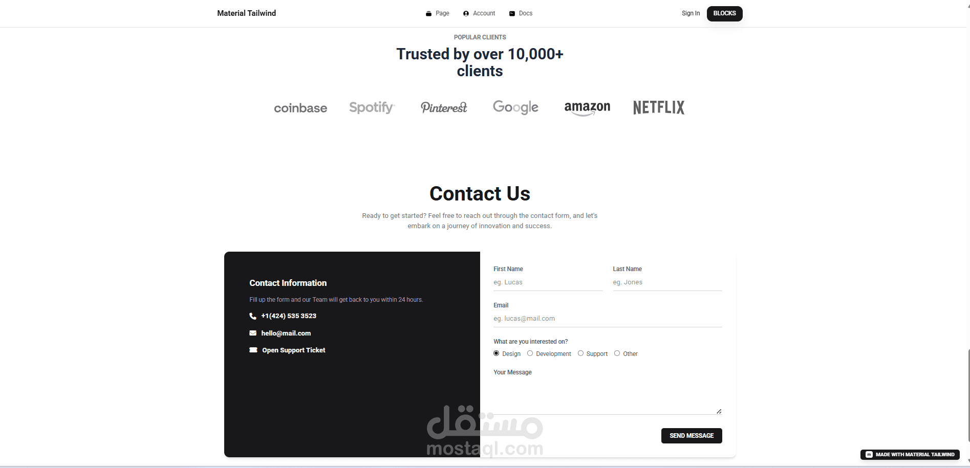تصميم عصري يعتمد على Material Tailwind.