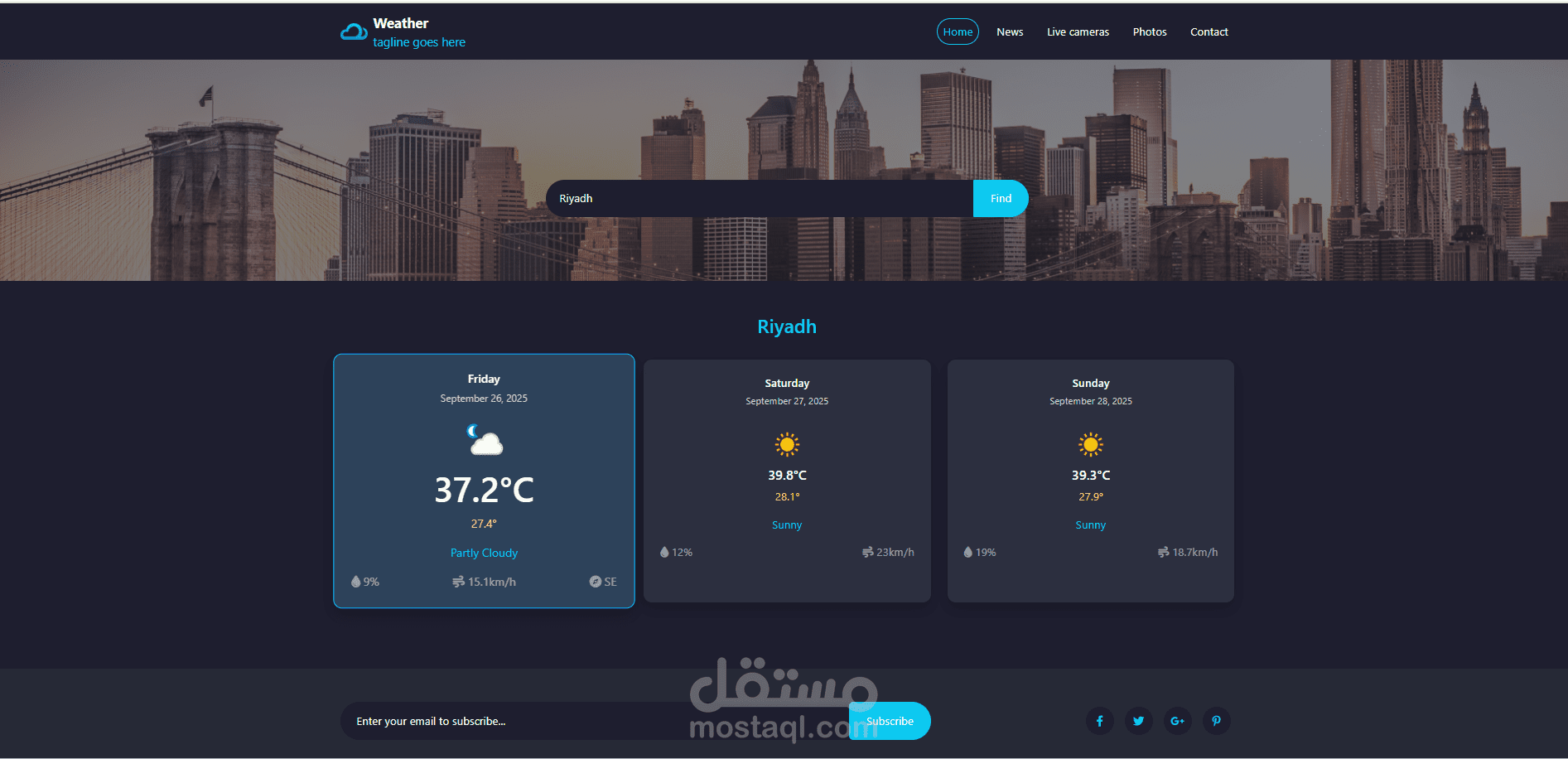 قسم خاص بالتواصل (Contact) مع إدخال البريد الإلكتروني مباشرة.