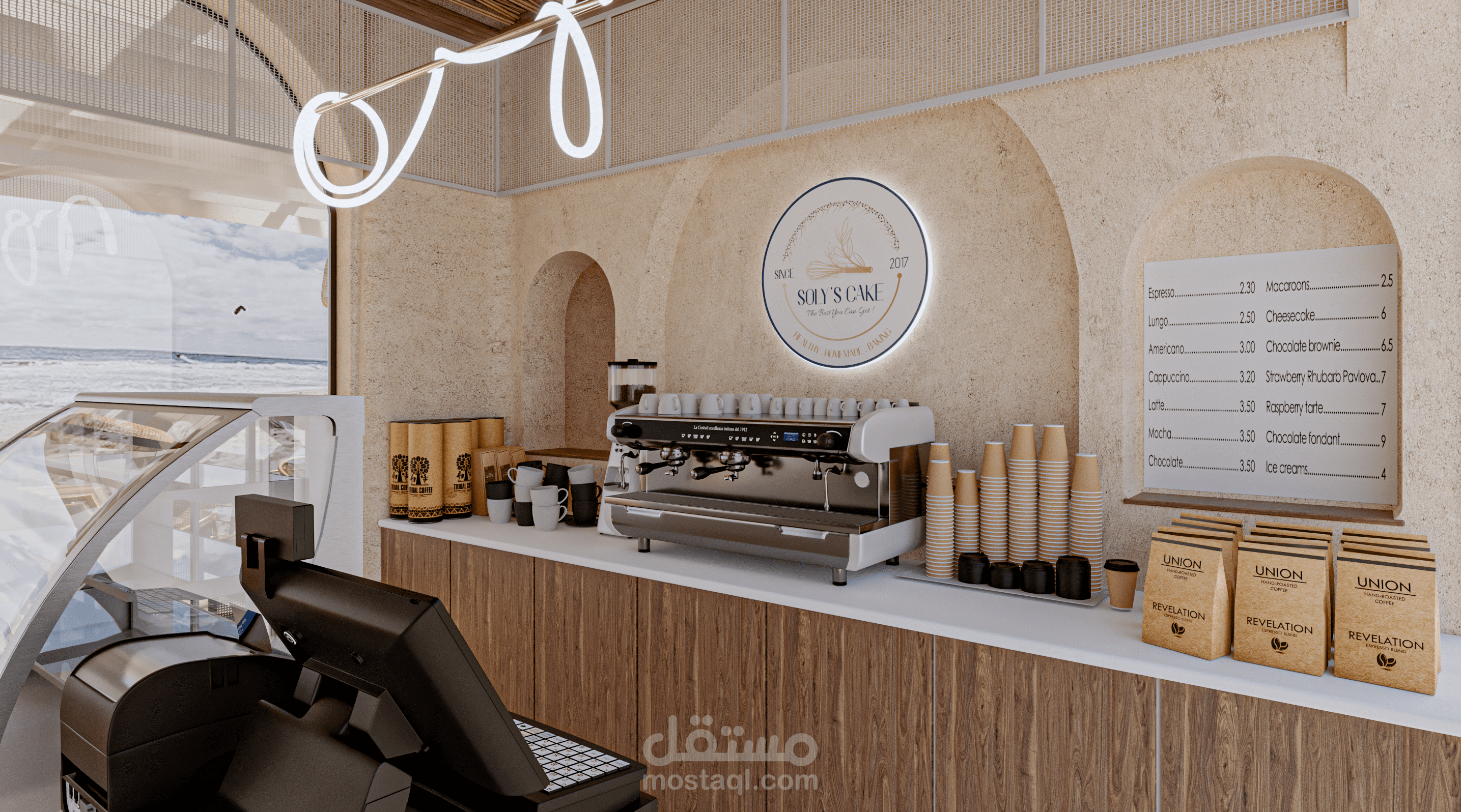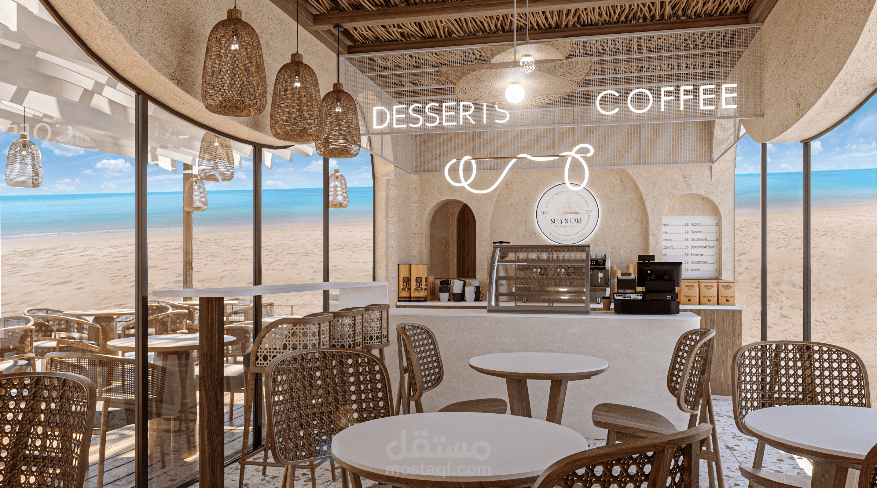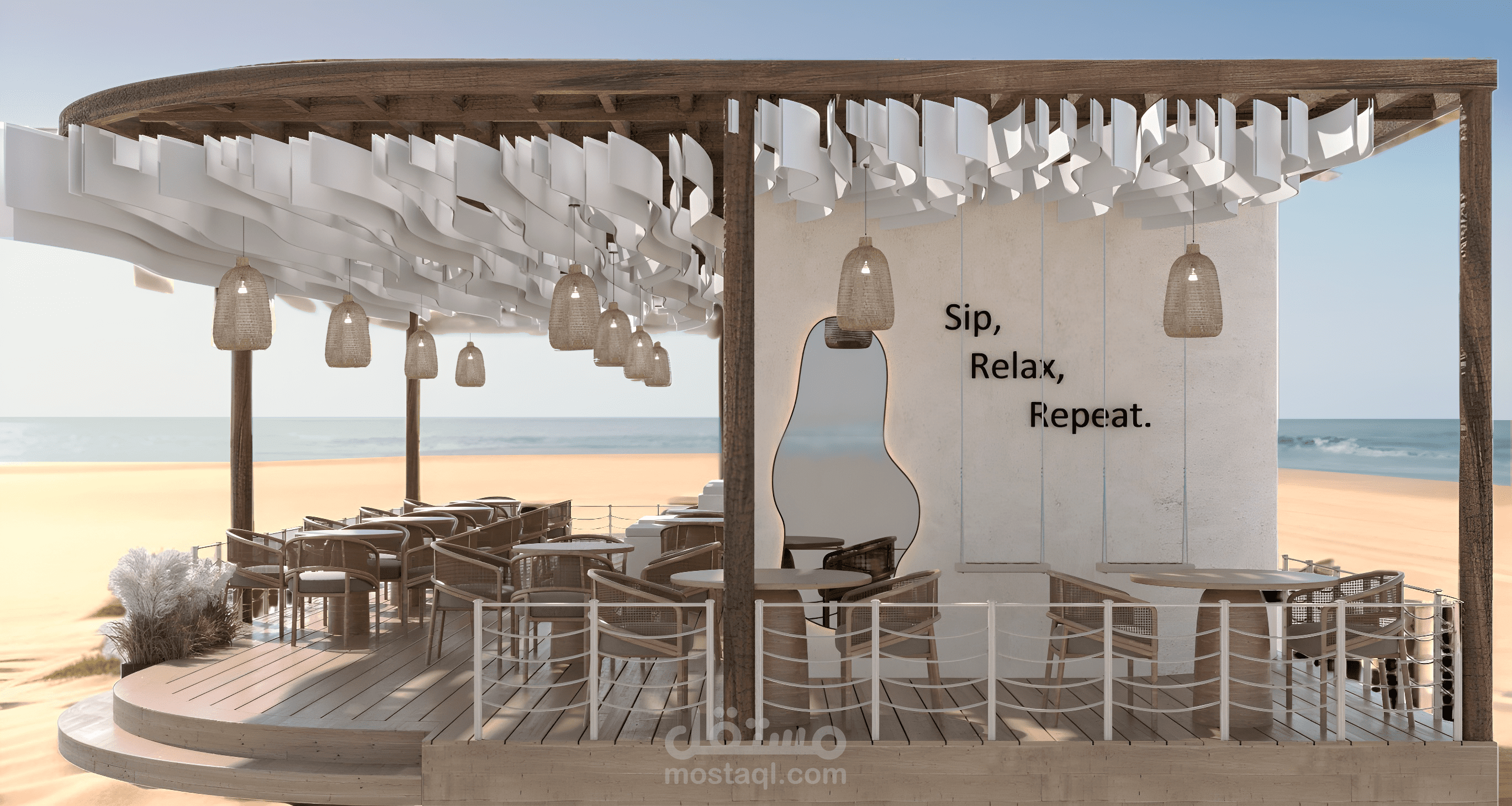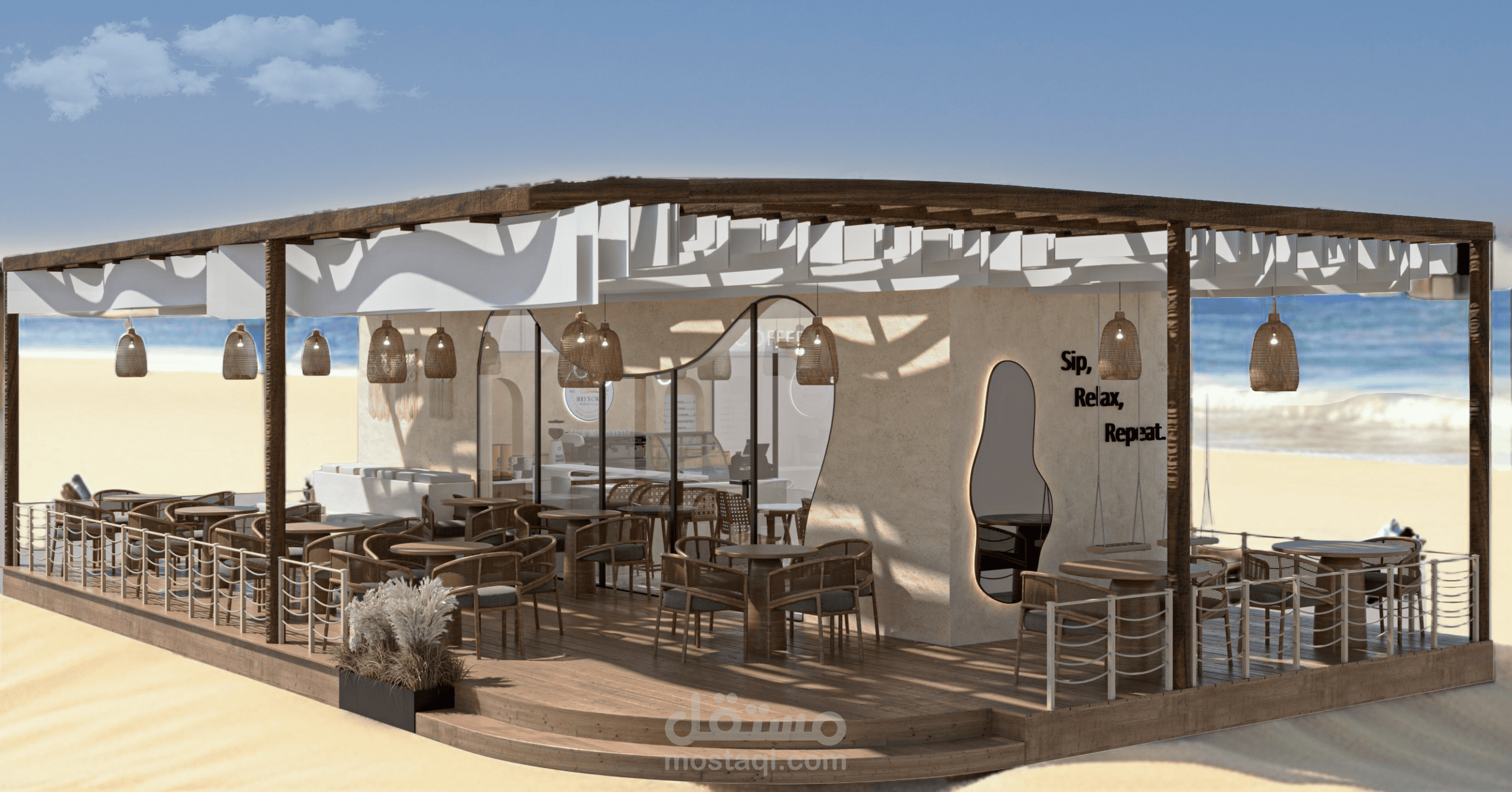 تصميم خارجي و داخلي ل كافيه علي الشاطئ في الساحل الشمالي, مصر