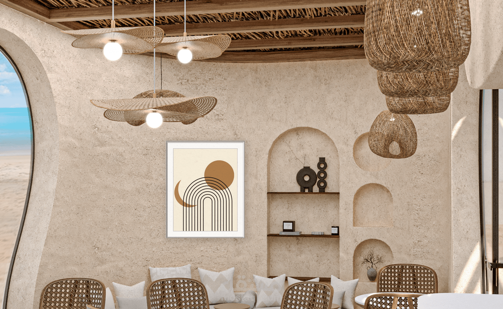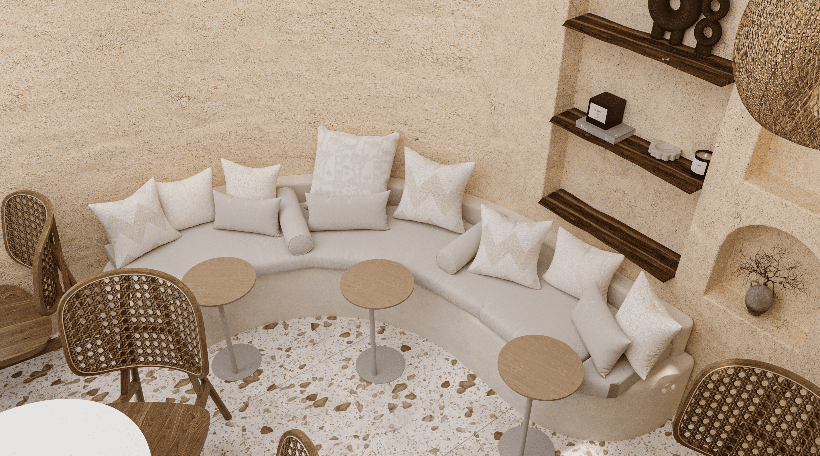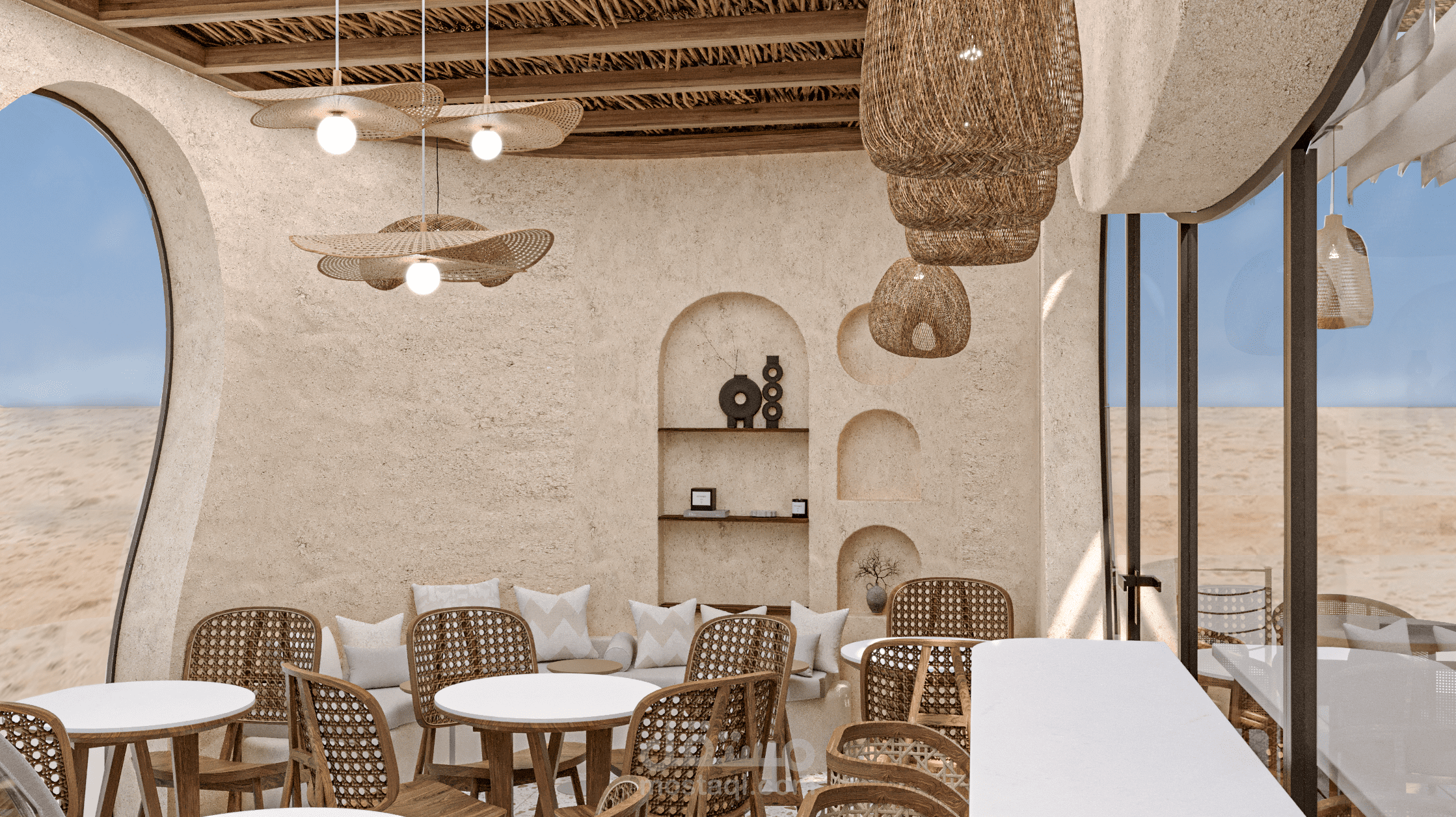 تصميم داخلي و خارجي علي طراز ال boho style لكافيه علي الشاطئ