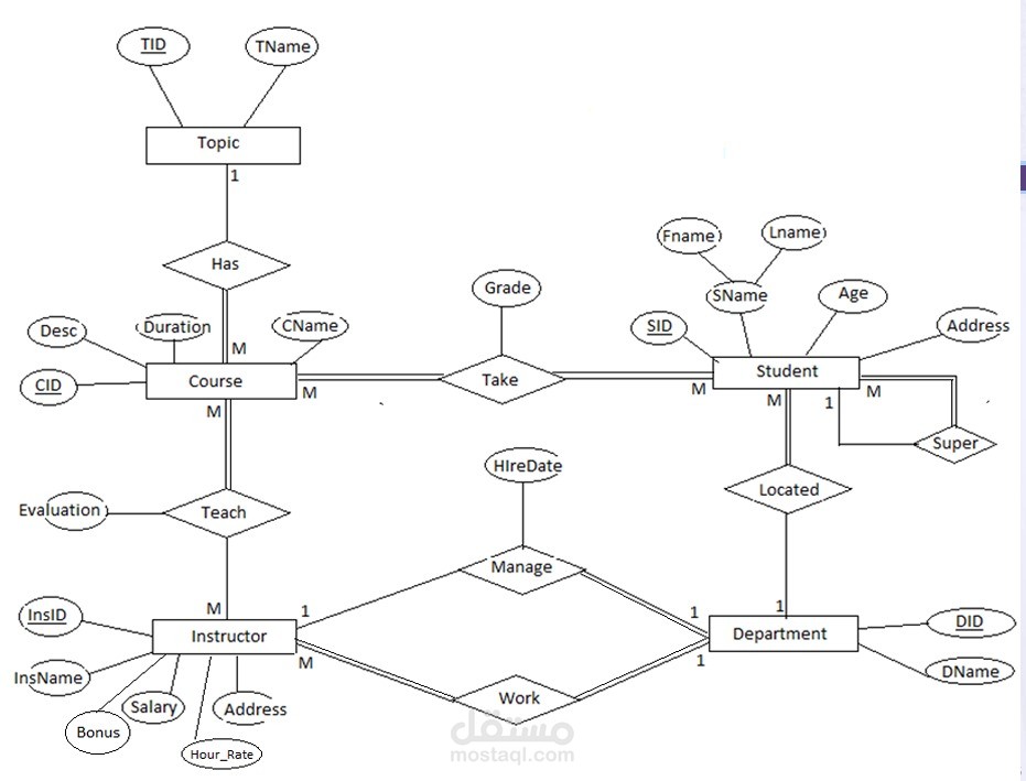 تصميم مخطط E-R Diagram وتحويله إلى Relational Schema.
