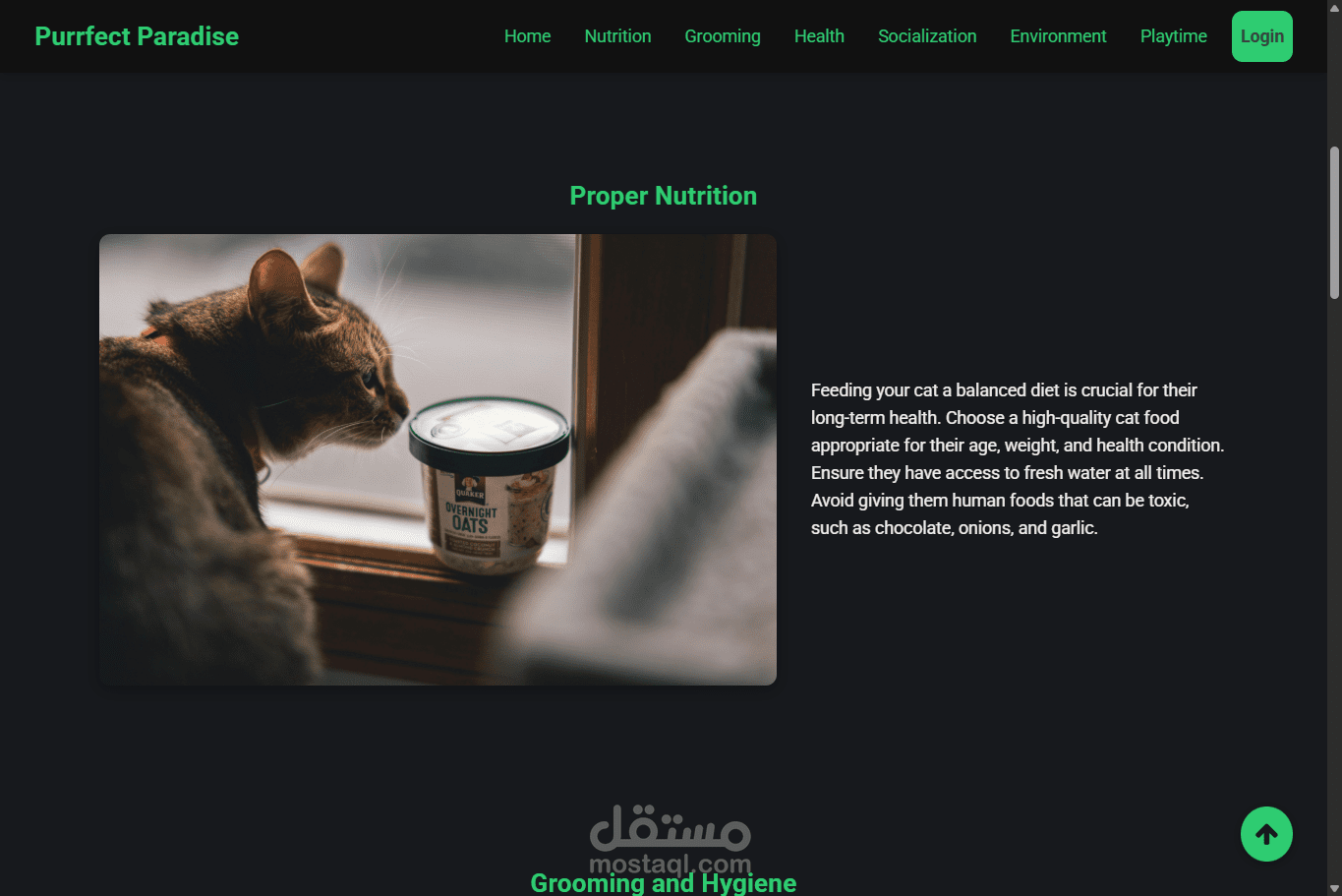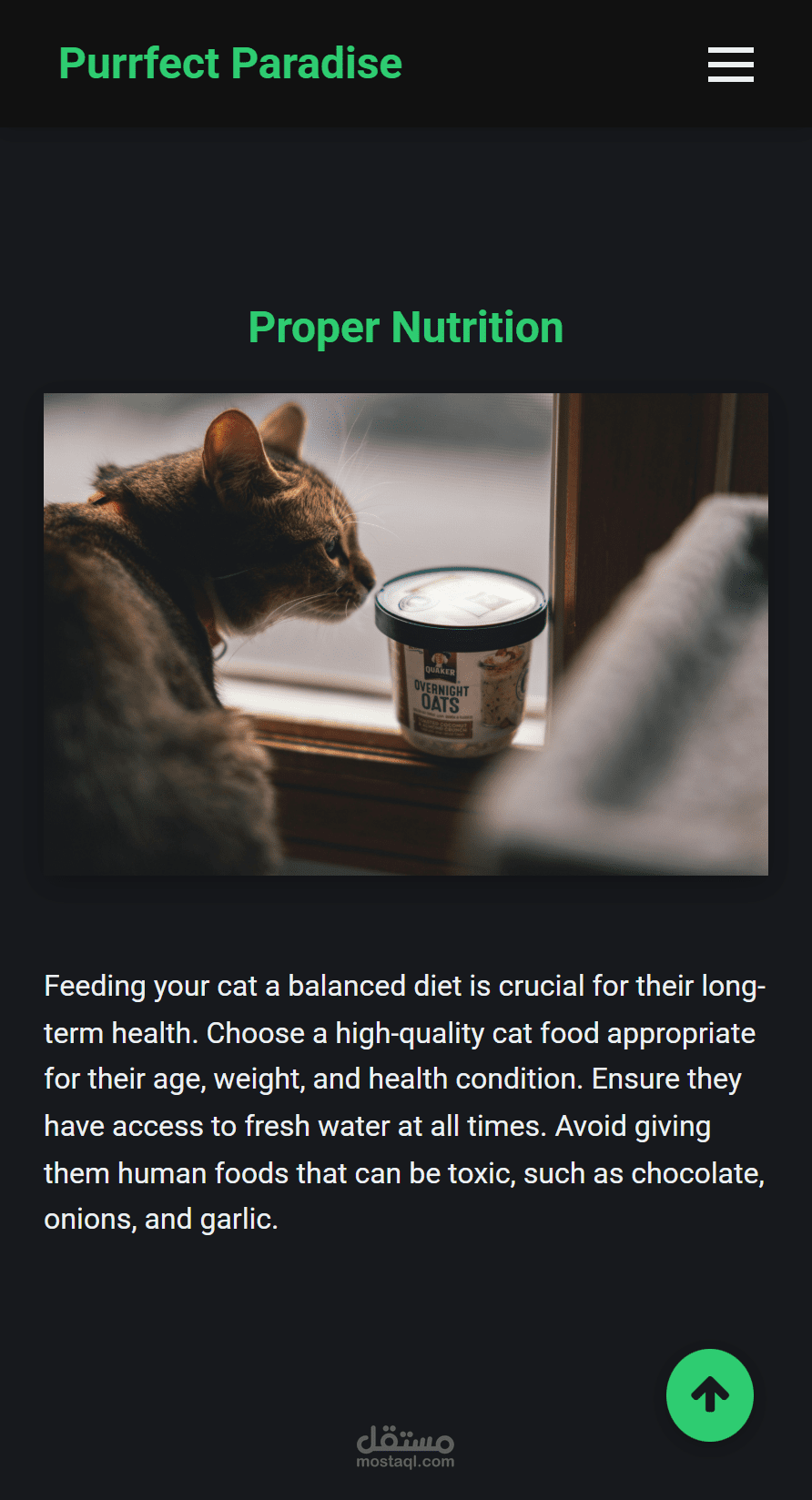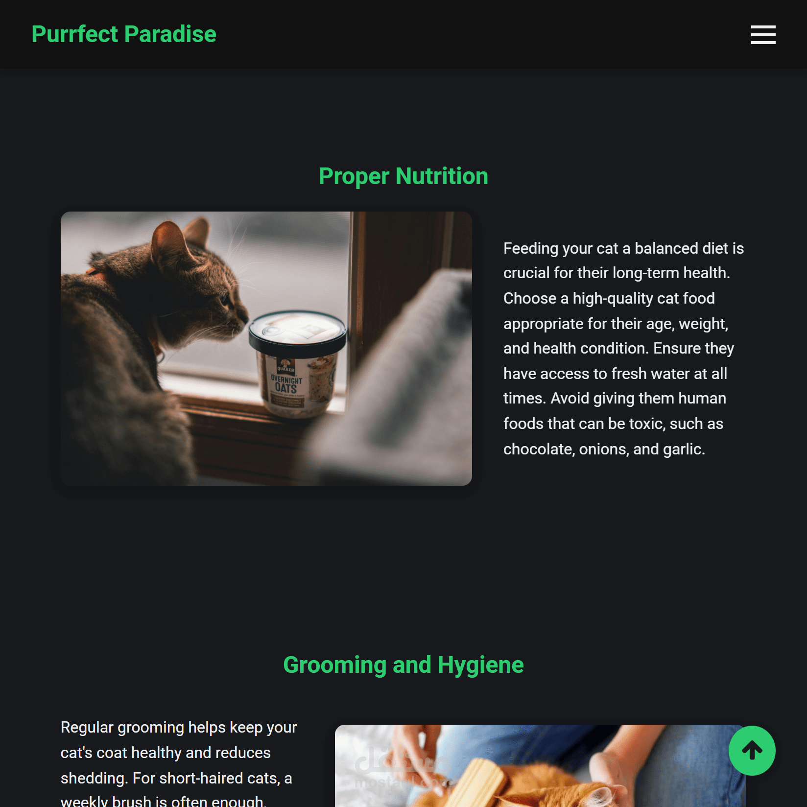 This is a modern, responsive website that serves as a comprehensive guide to raising happy and healthy feline companions. The site is built with a focus on a clean, maintainable design and a smooth user experience.