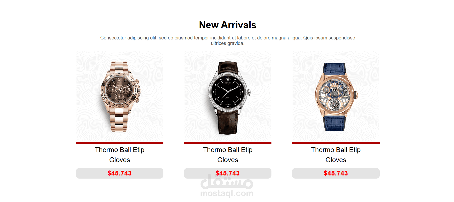 قمتُ بتصميم وتطوير واجهة متجر إلكتروني عصرية ومتجاوبة متخصصة في عرض الساعات الفاخرة بشكل أنيق واحترافي.