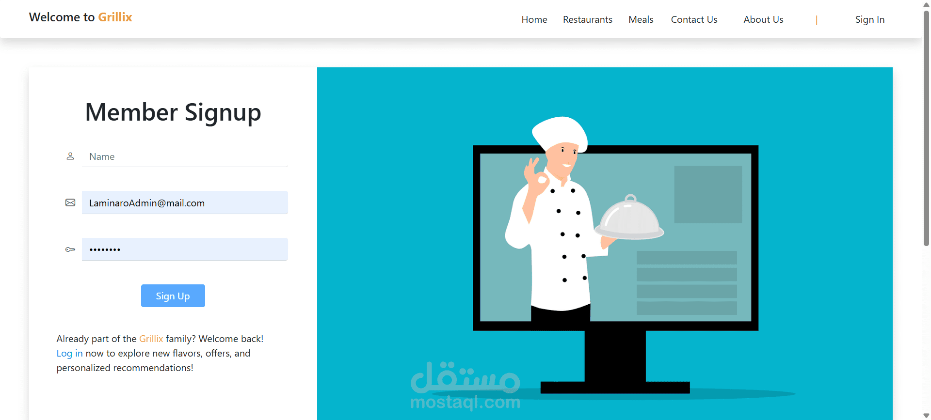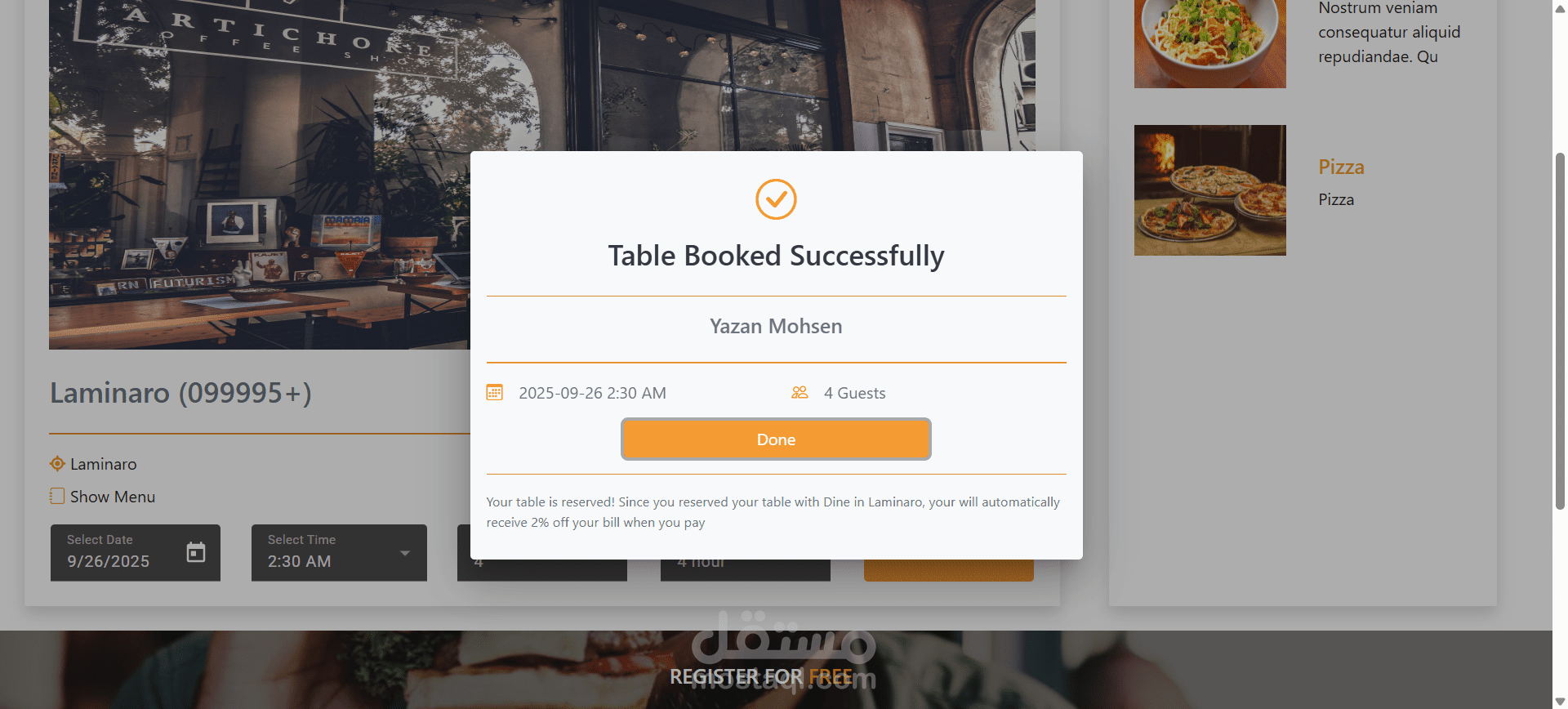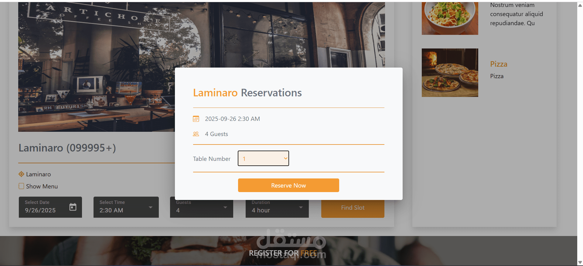 بعد قبول التسجيل، يمكن لمدير المطعم الدخول إلى النظام وإضافة معلومات الوجبات المتوفرة، بالإضافة إلى إعداد خيارات الحجز.