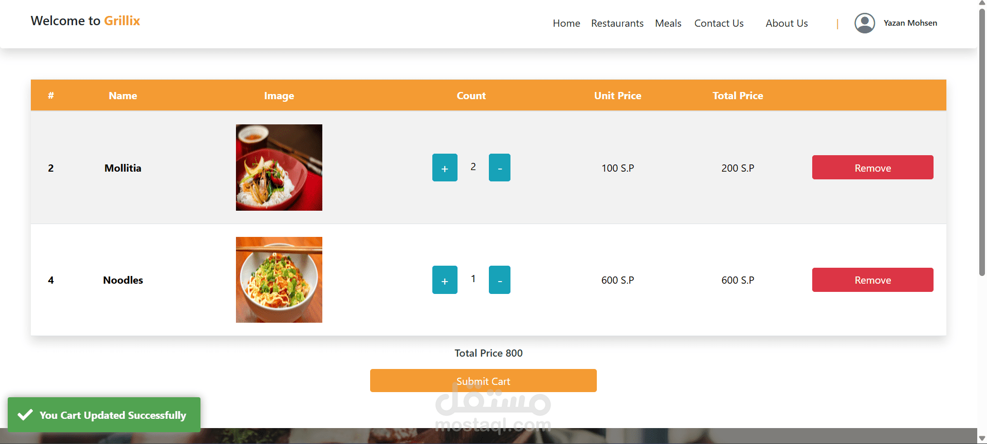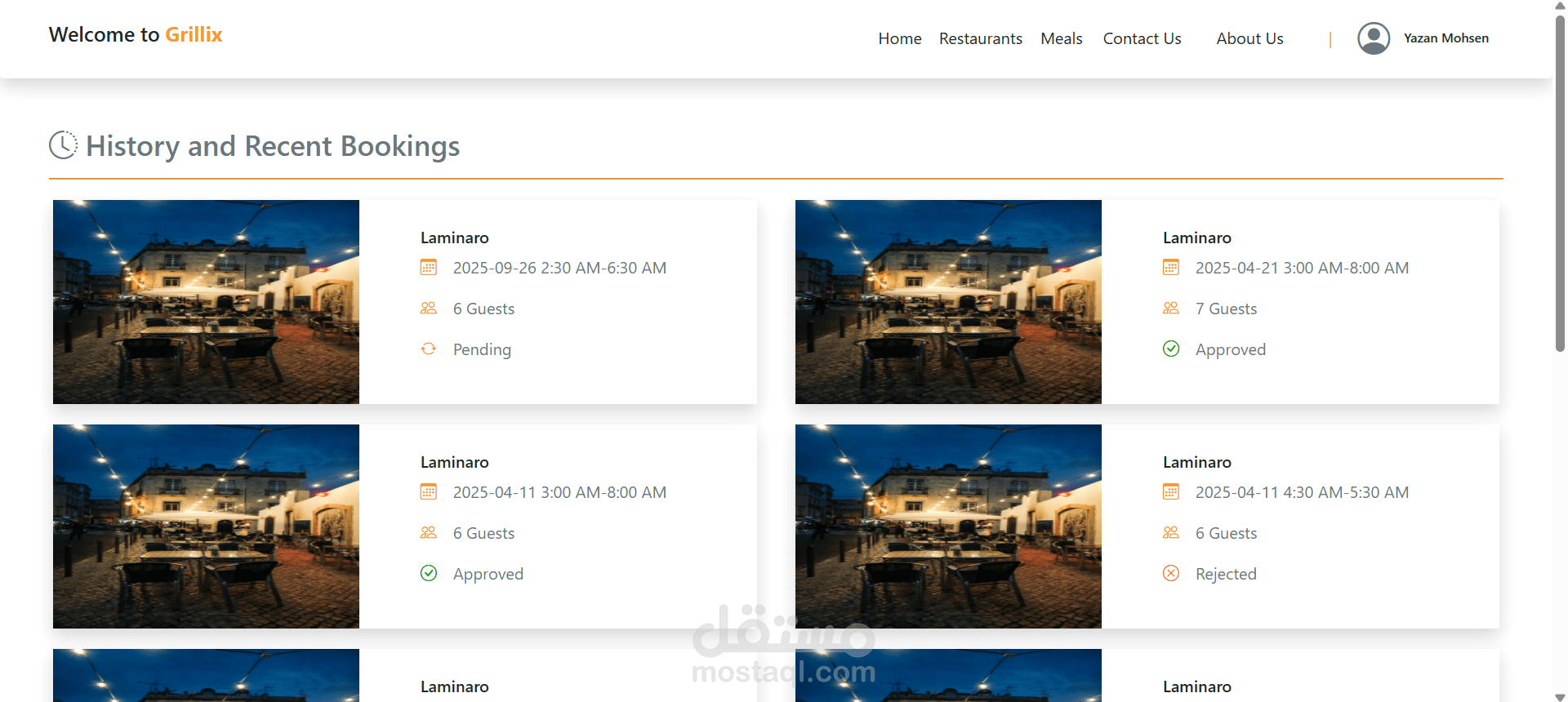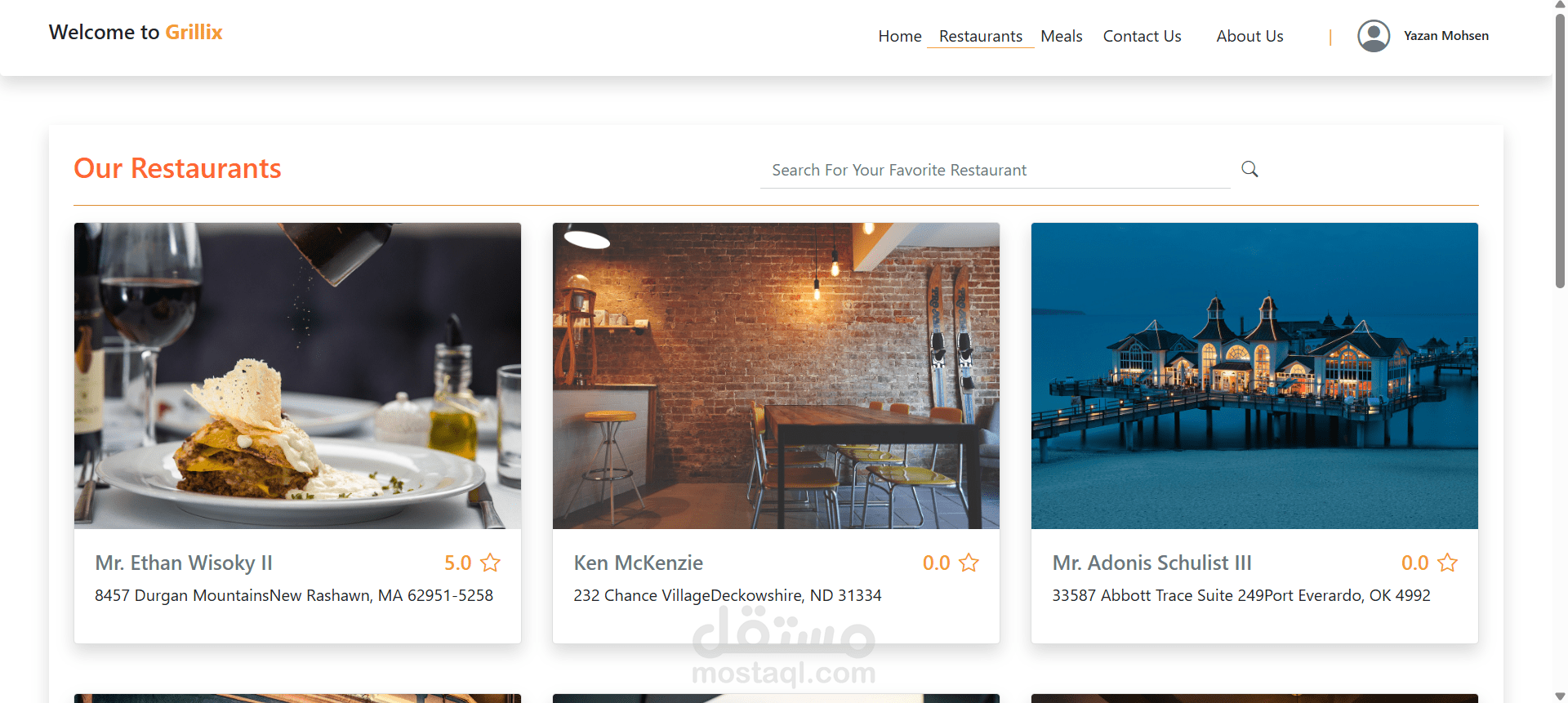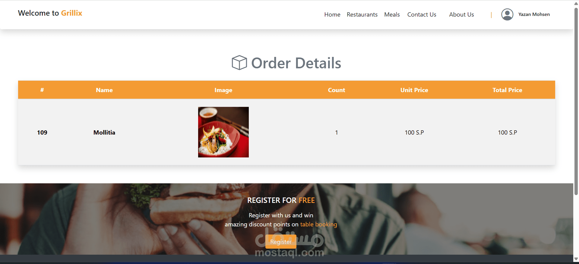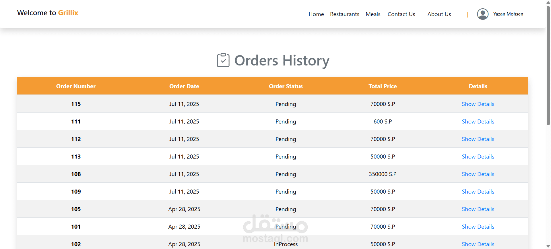 يستطيع الزبون الدخول إلى النظام واستعراض قائمة المطاعم المسجلة، والاطلاع على تفاصيل الوجبات، مع إمكانية البحث حسب اسم المطعم.
