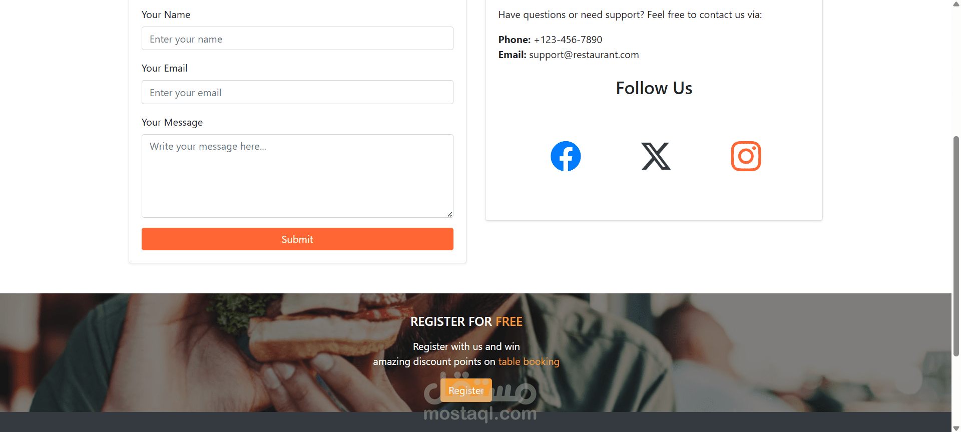 يقوم مدير المطعم بإدخال بياناته الأساسية وتقديم طلب تسجيل عبر النظام، ليتم مراجعته من قبل مدير النظام.