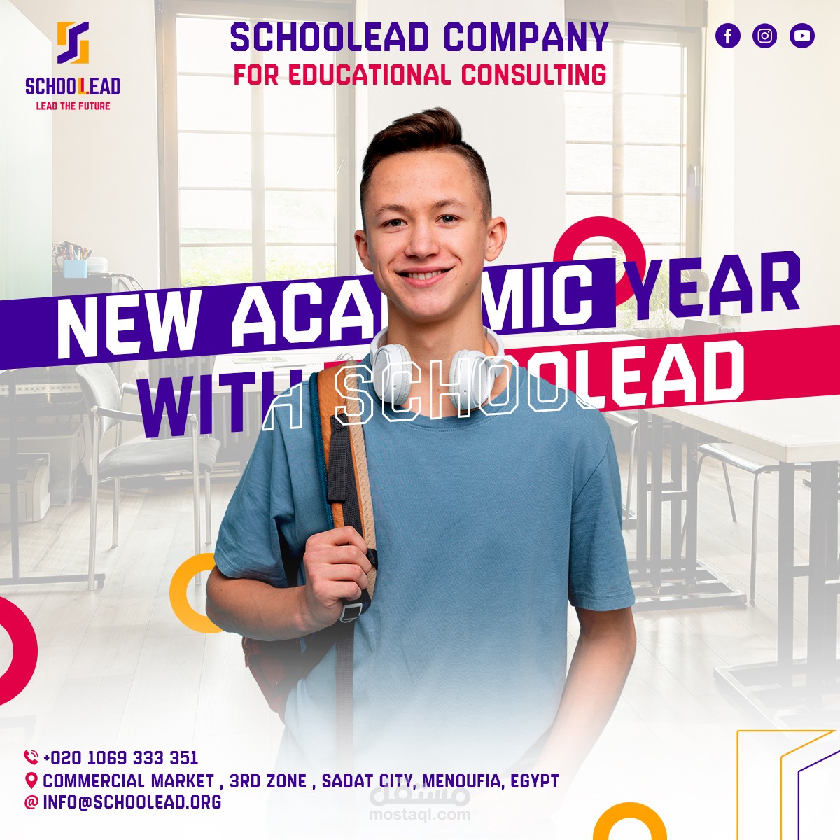 "تصميم بوست إعلاني لشركة 'SCHOOLEAD COMPANY' للاستشارات التعليمية – حملة 'عام دراسي جديد'"