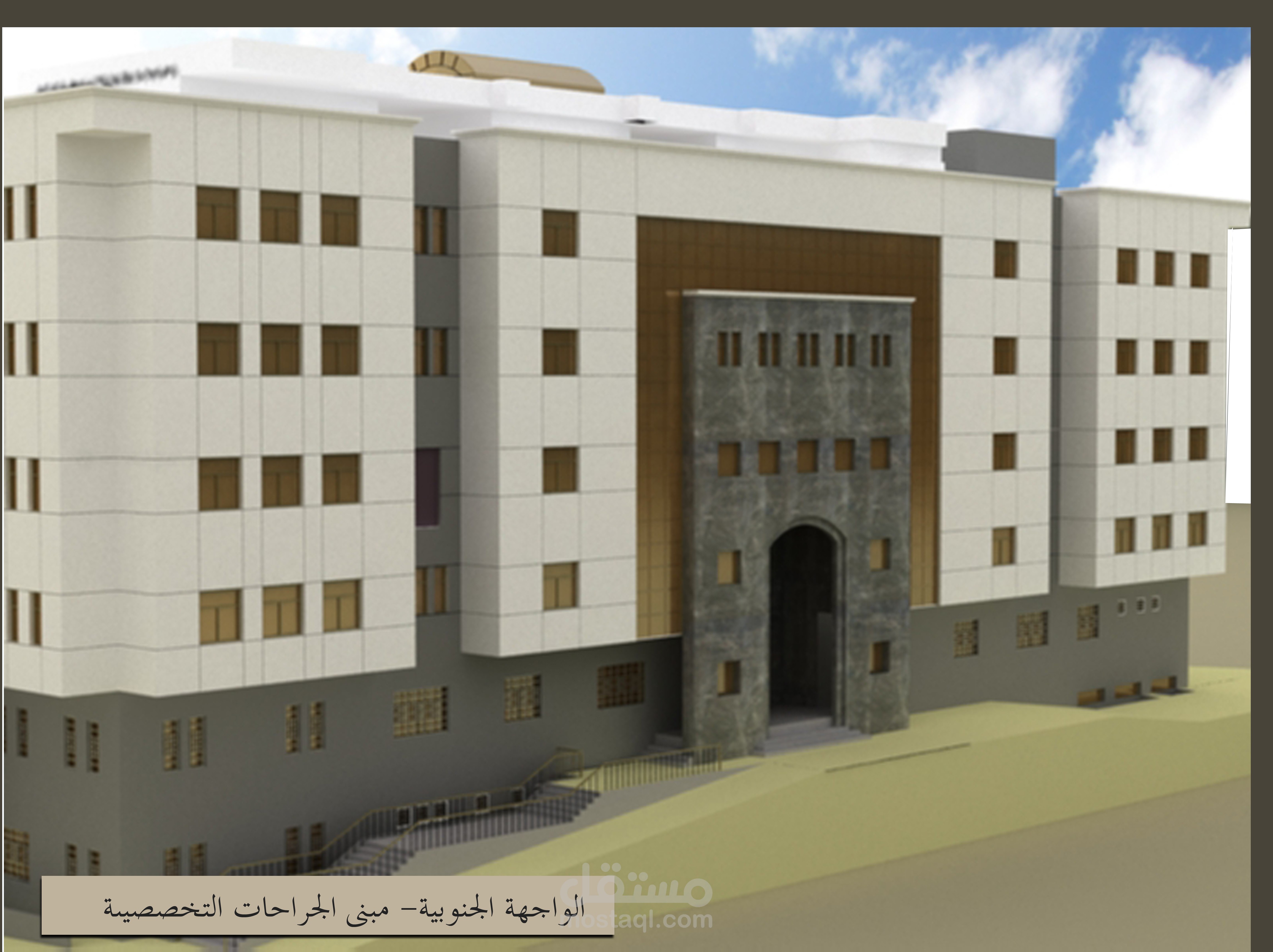 تصميم خارجي لمستشفى الشفاء و التصميم الداخلي لها و الاشراف على اعمال التشطيبات كافة و القيام بحساب الكميات والمستخلصات