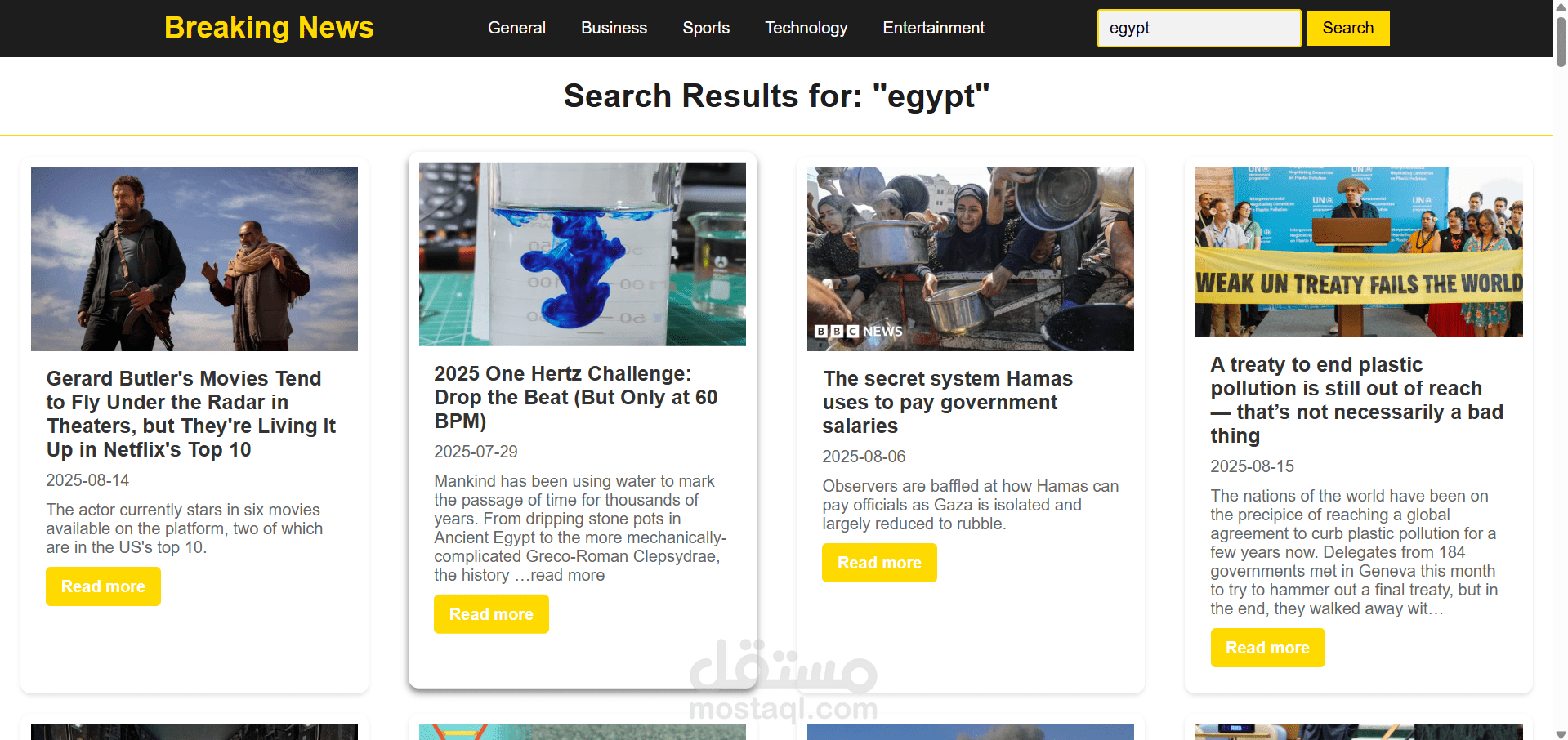 مشروع Breaking News Web App هو تطبيق ويب يعرض آخر الأخبار بشكل مباشر من خلال التكامل مع NewsAPI.