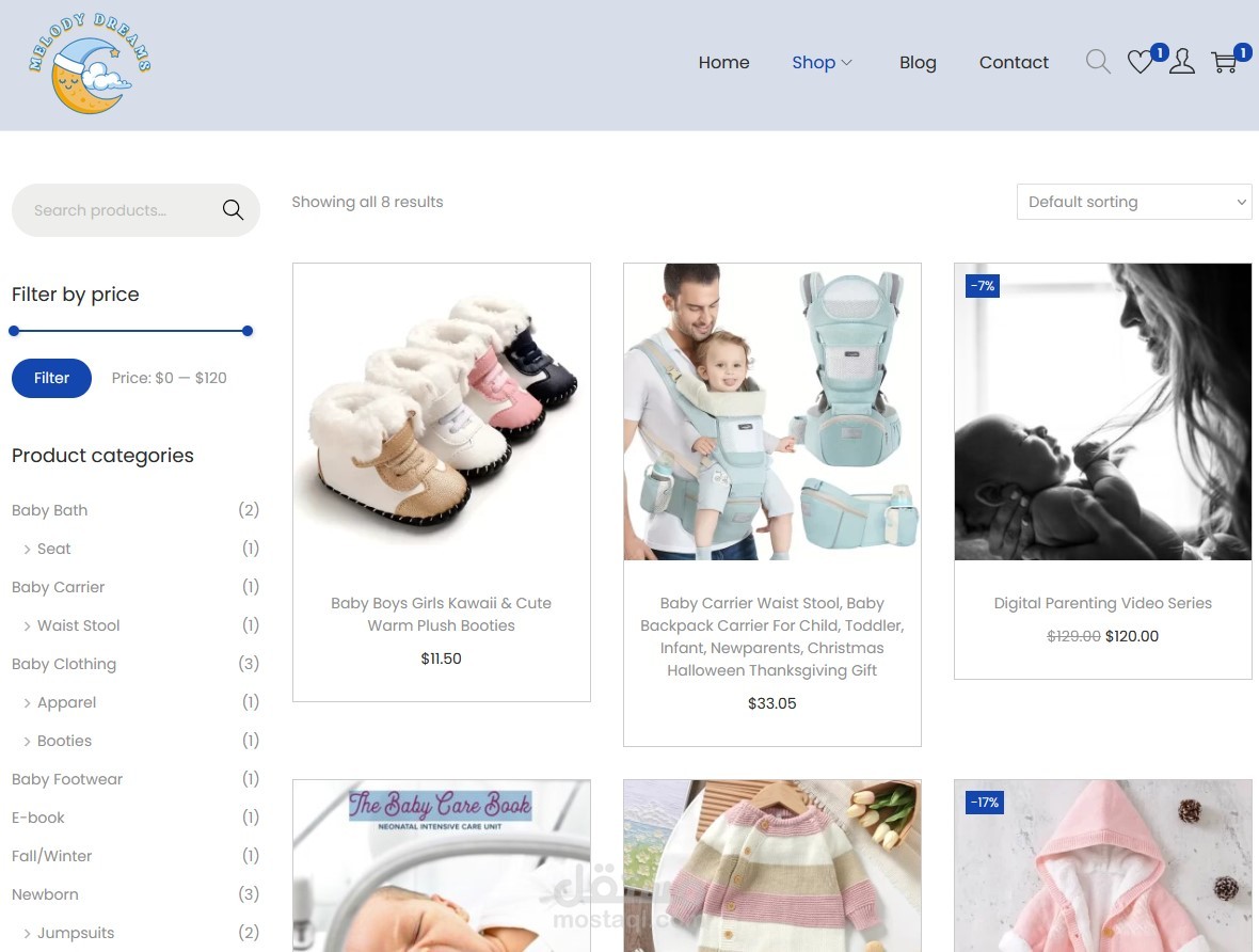 موقع تجريبي للتجارة الإلكترونية لملابس الأطفال مبني على WordPress. يتميز هذا الموقع بمدونة تحتوي على نصائح حول تربية الأطفال وتجربة تسوق سلسة، ويعرض قدرتي على إنشاء متاجر إلكترونية سهلة الاستخدام. يرجى ملاحظة أنه لأغراض العرض التوضيحي فقط.