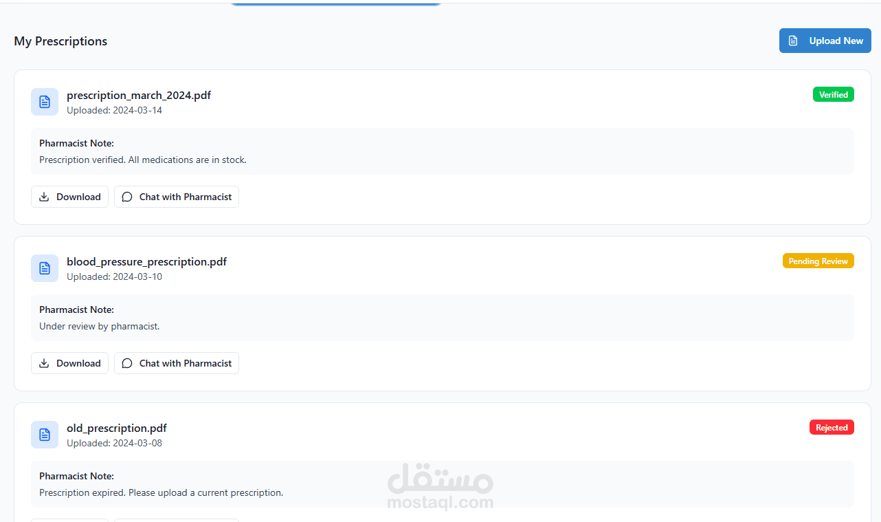 الصيدلي: مراجعة الروشتات، إدارة المخزون، الرد على العملاء عبر الدردشة، معالجة الطلبات.