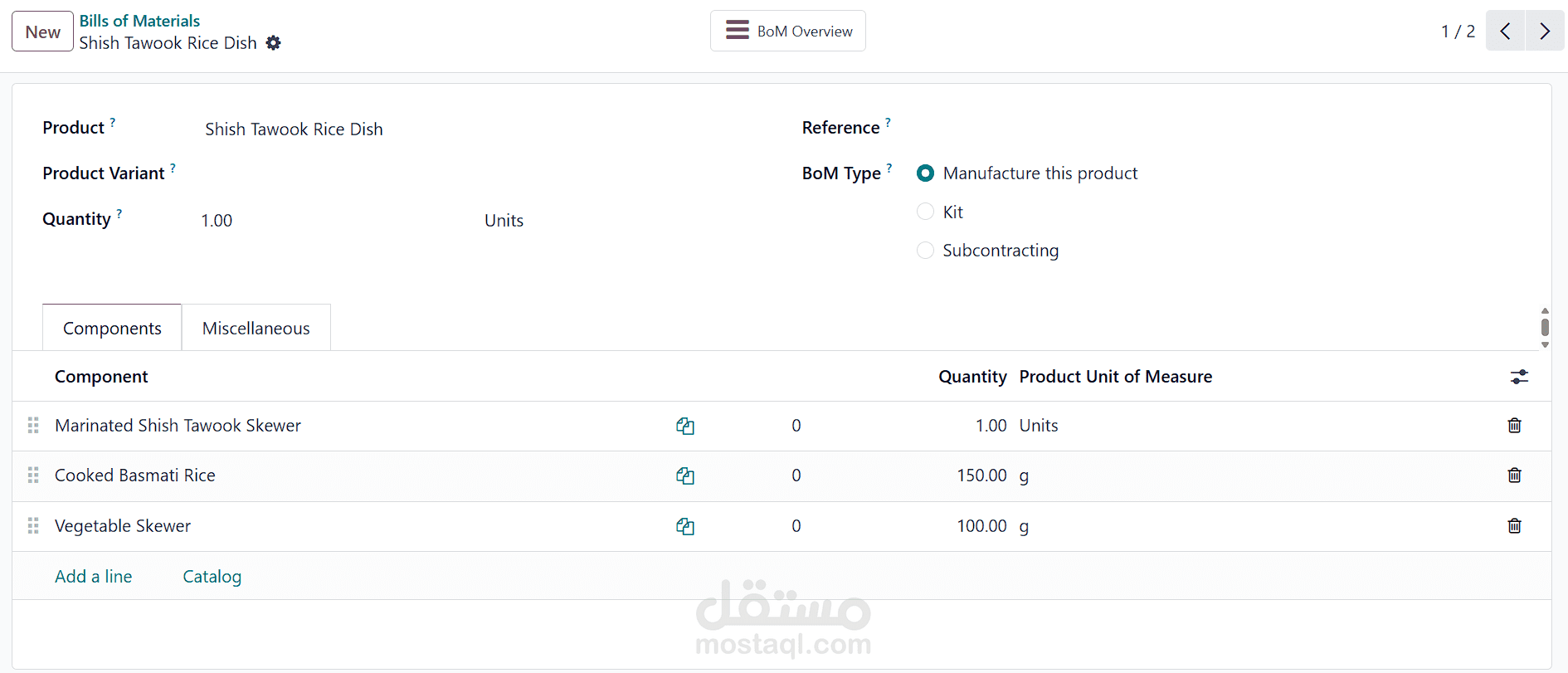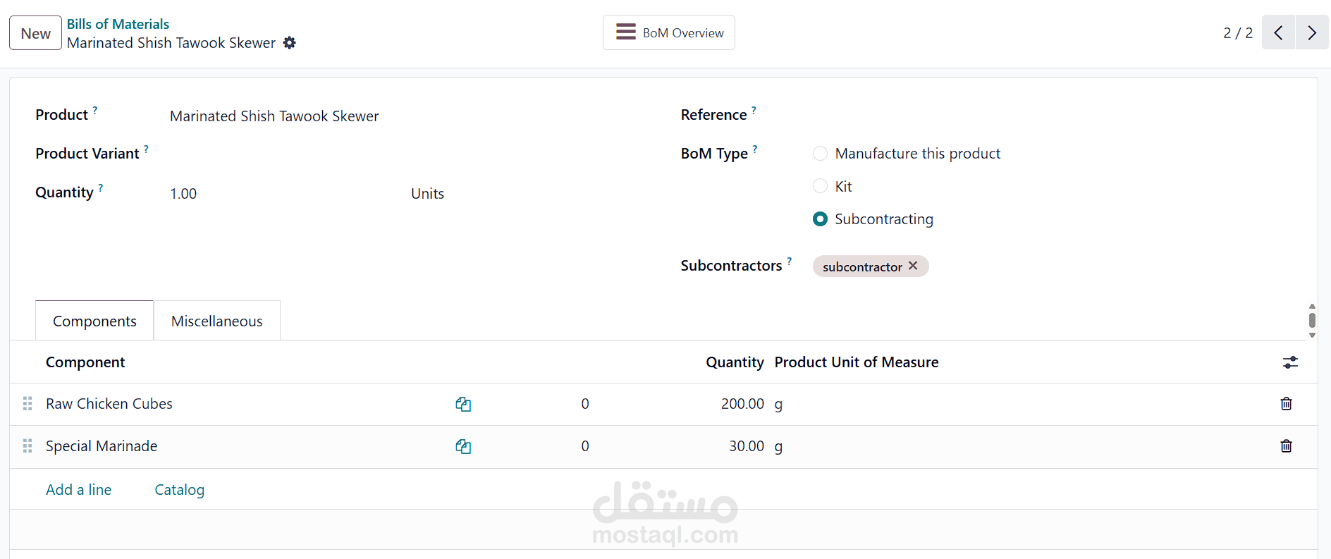 تطبيق حالات متقدمة مثل التصنيع لدى الغير (Subcontracting) لمكونات معينة.