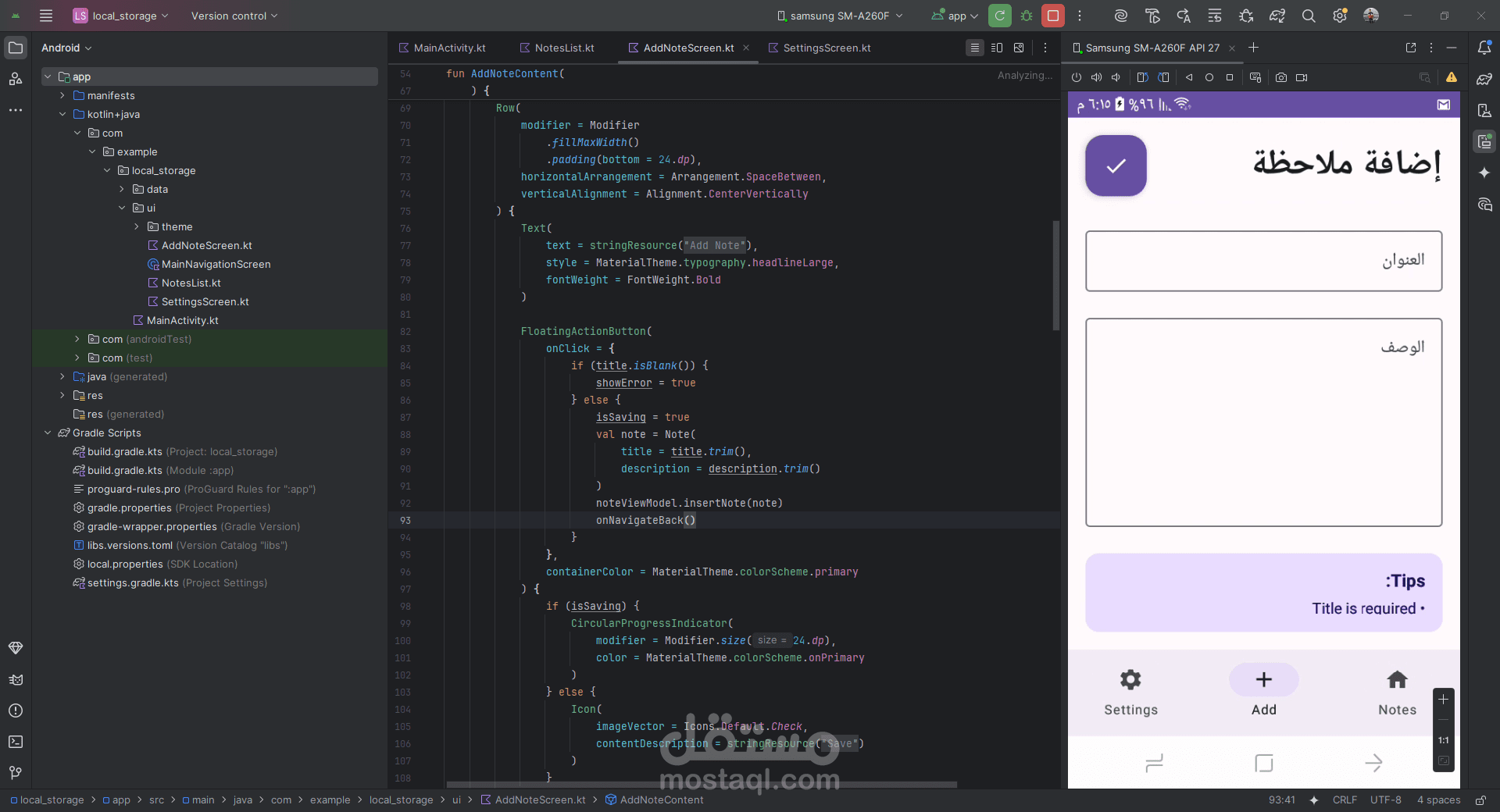 تطبيق أندرويد لإدارة الملاحظات (Notes App).