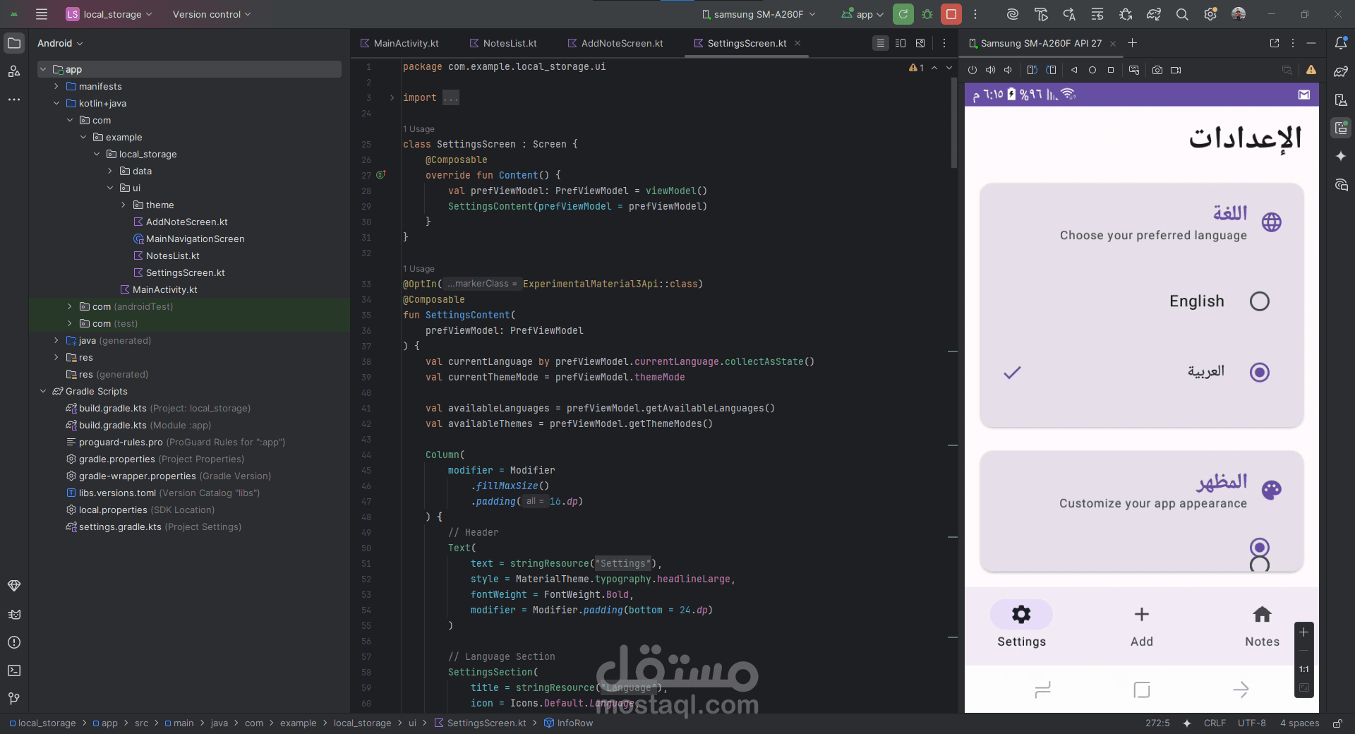 مبني باستخدام Kotlin + Jetpack Compose (UI حديثة تعتمد على البرمجة التركيبية Composables).