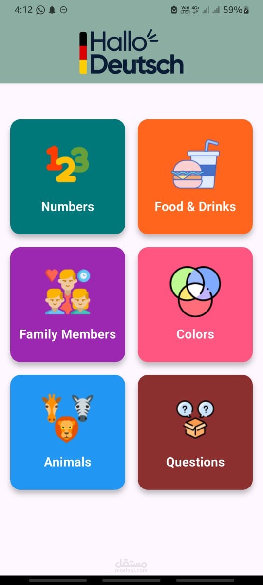 Hallo Deutsch — تطبيق تعليمي لتعلم الألماني للمبتدئين والأطفال